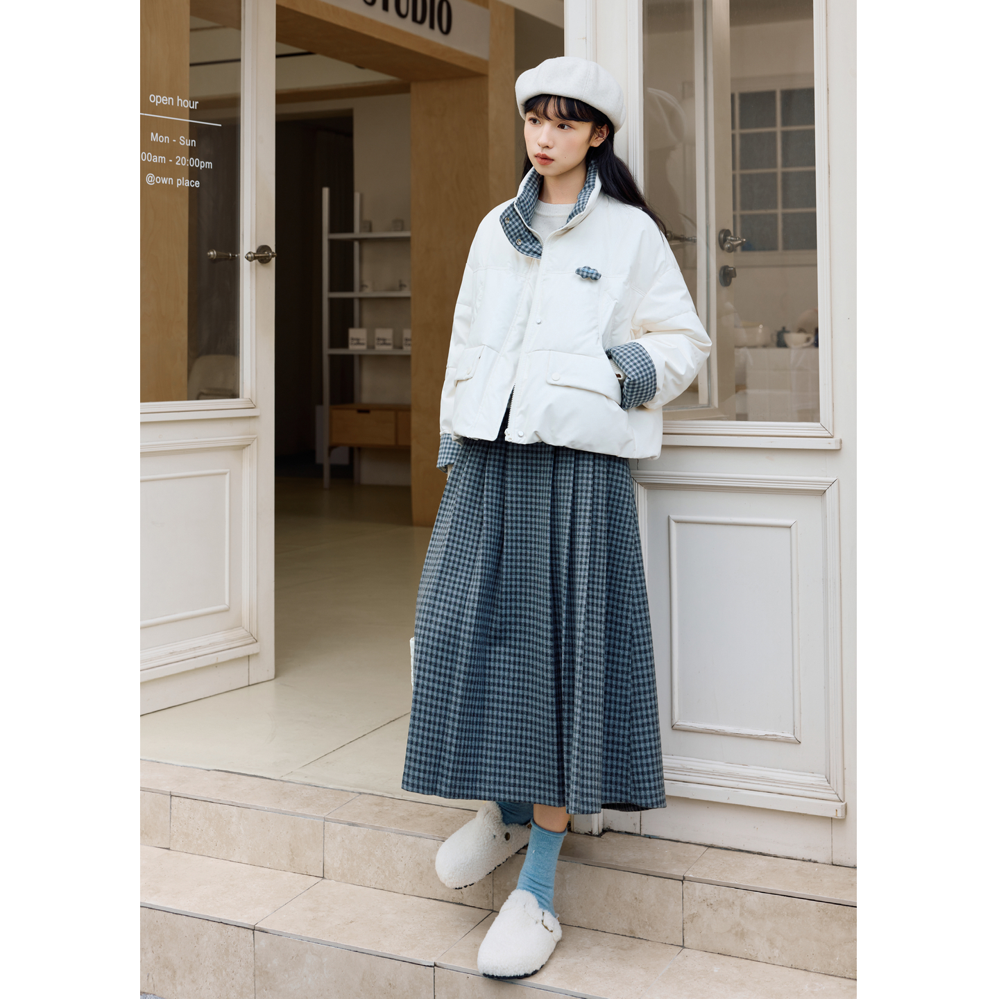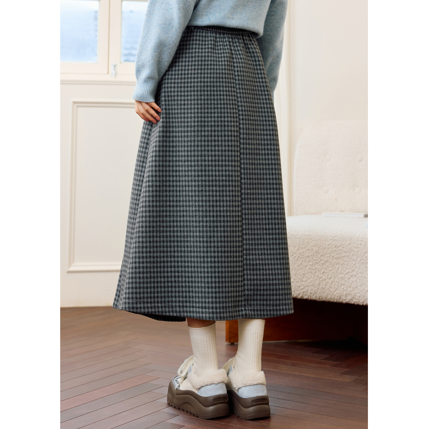 紫涵灰色格纹百褶裙女2025年冬季 韩系通勤高腰显瘦a字长裙子 新款