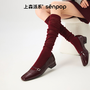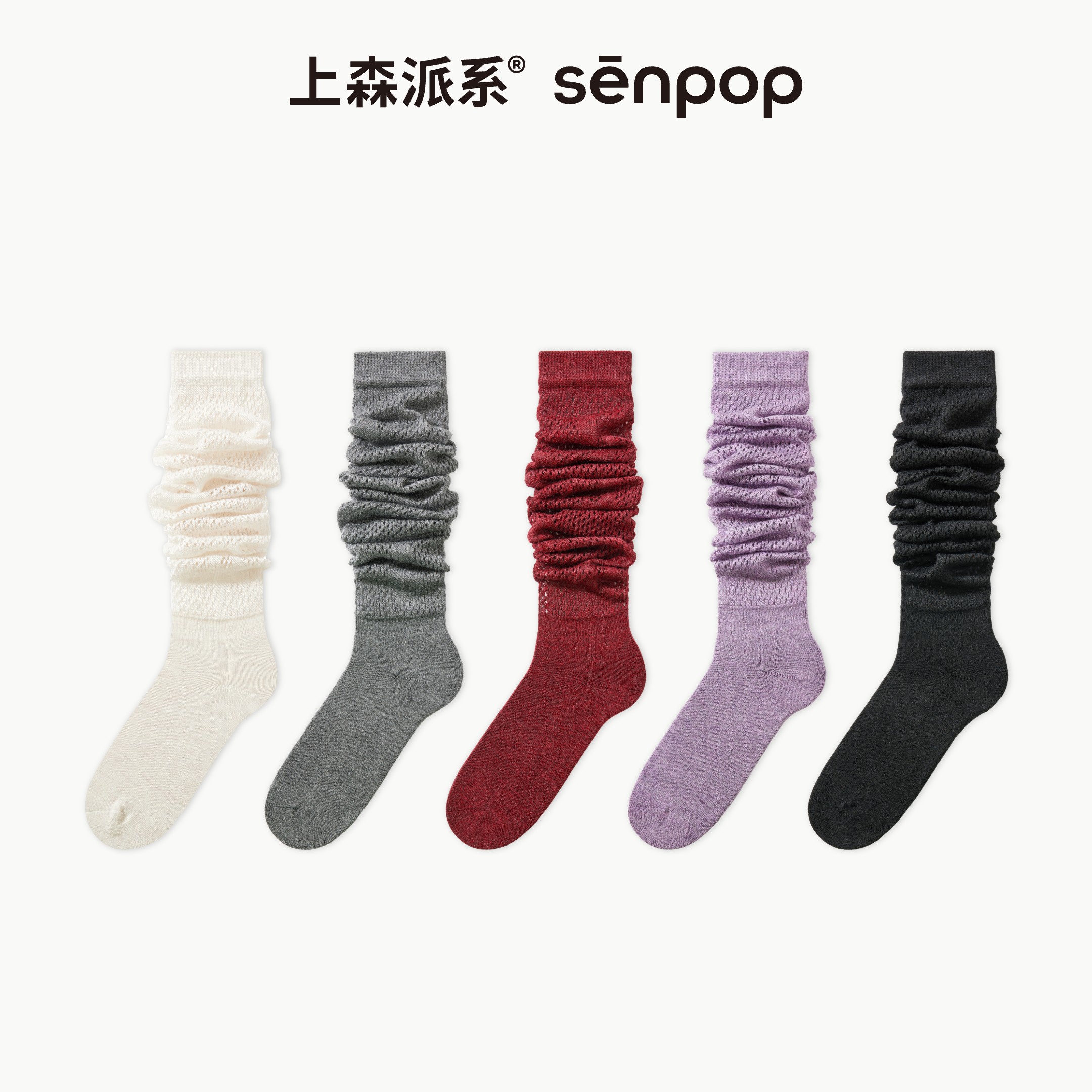 上森堆堆小腿袜灰色袜子长筒配靴子棉袜miu系过膝长袜镂空提花袜