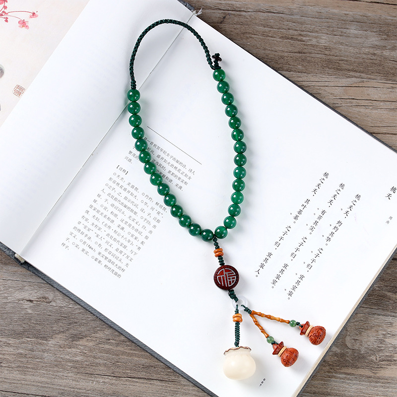 大肚子钱袋汽车挂饰天然白玉菩提小福袋车挂挂件创意男女礼品挂件