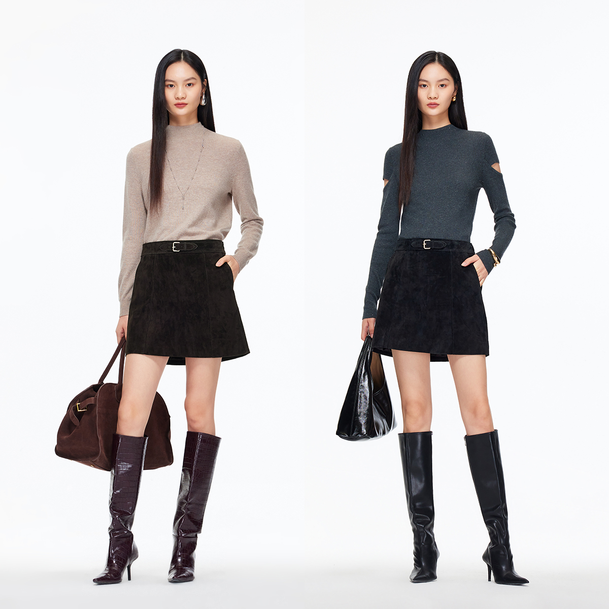 美拉德高腰A字短裙气质优雅325411001 新款 Vero Moda皮裙2025冬季