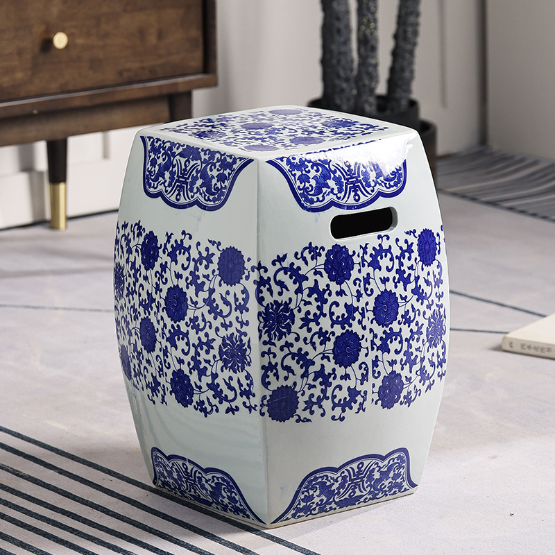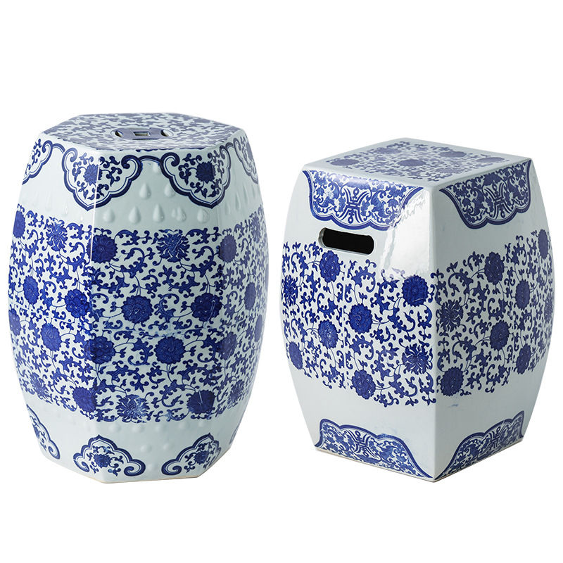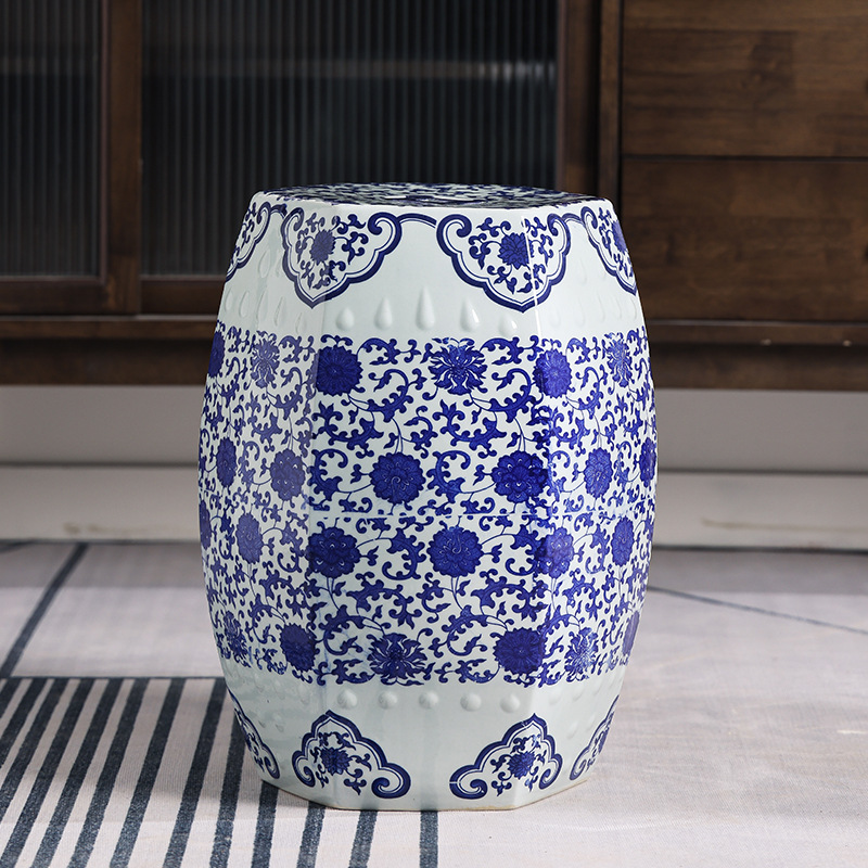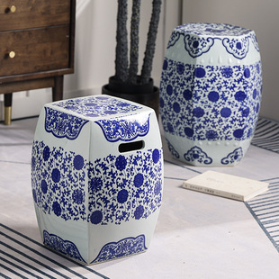 换鞋 陶瓷鼓凳绣墩外贸瓷凳子欧美式 凳 青花瓷古典陶瓷鼓墩 新中式