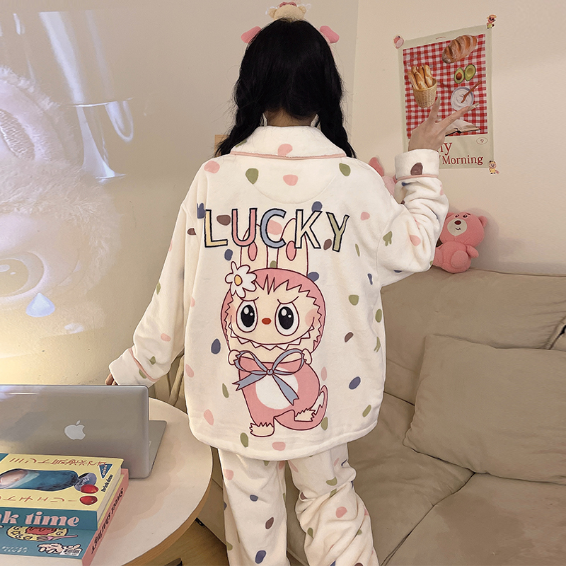 初中学生 少女珊瑚绒家居服套装 拉布布法兰绒保暖睡衣女款 加厚新款