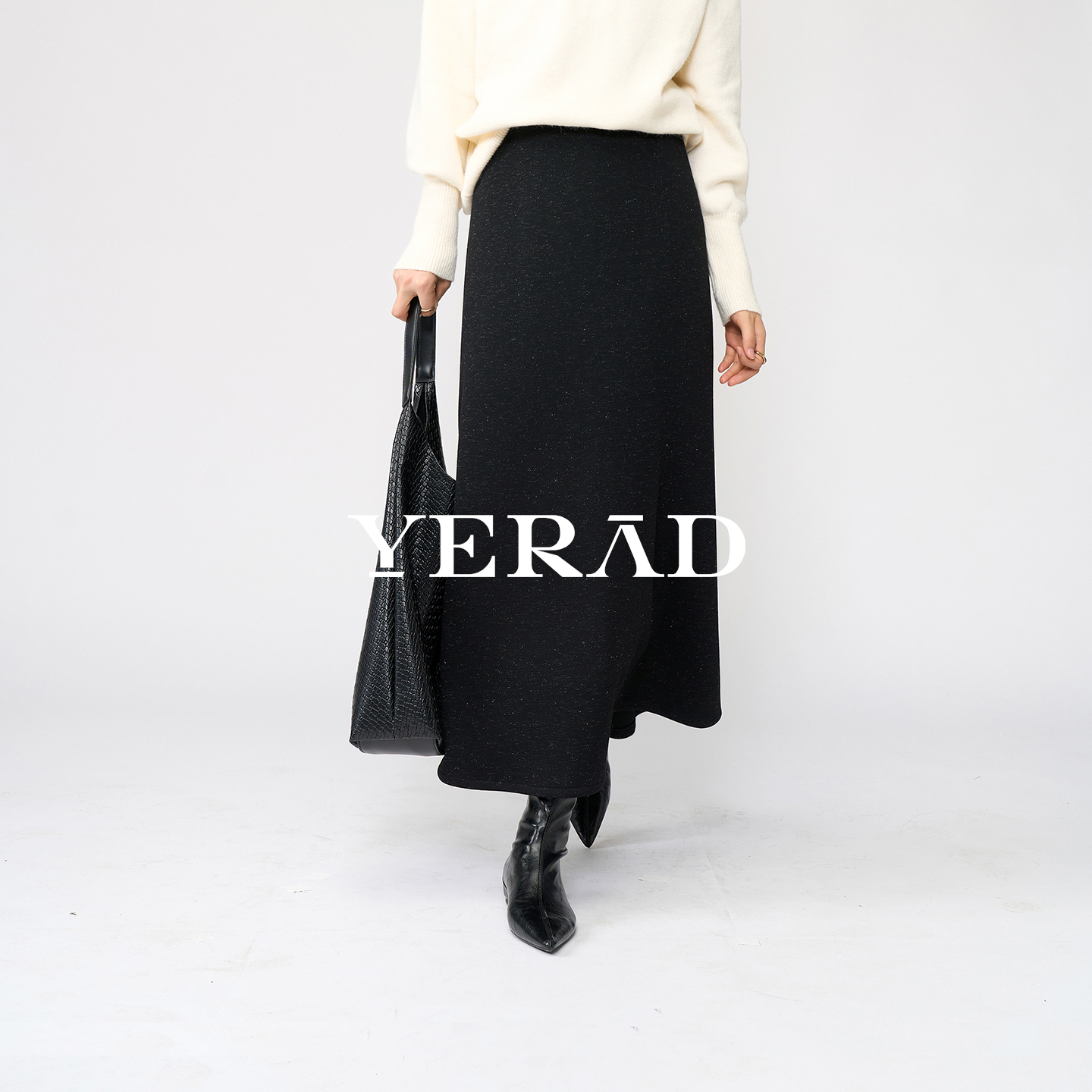 娅丽达高腰羊毛醋酸微光繁星半身裙女25秋冬新款 银丝伞裙黑色长裙