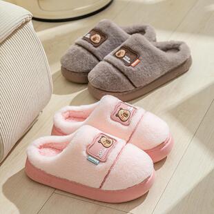 室内家居家用保暖加绒毛毛情侣厚底春秋男 2025新款 棉拖鞋 女士冬季