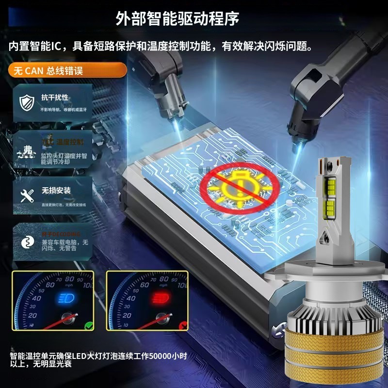 海华特汽车led大灯泡超亮H7H1H4远近光灯一体9005改装 激光12v
