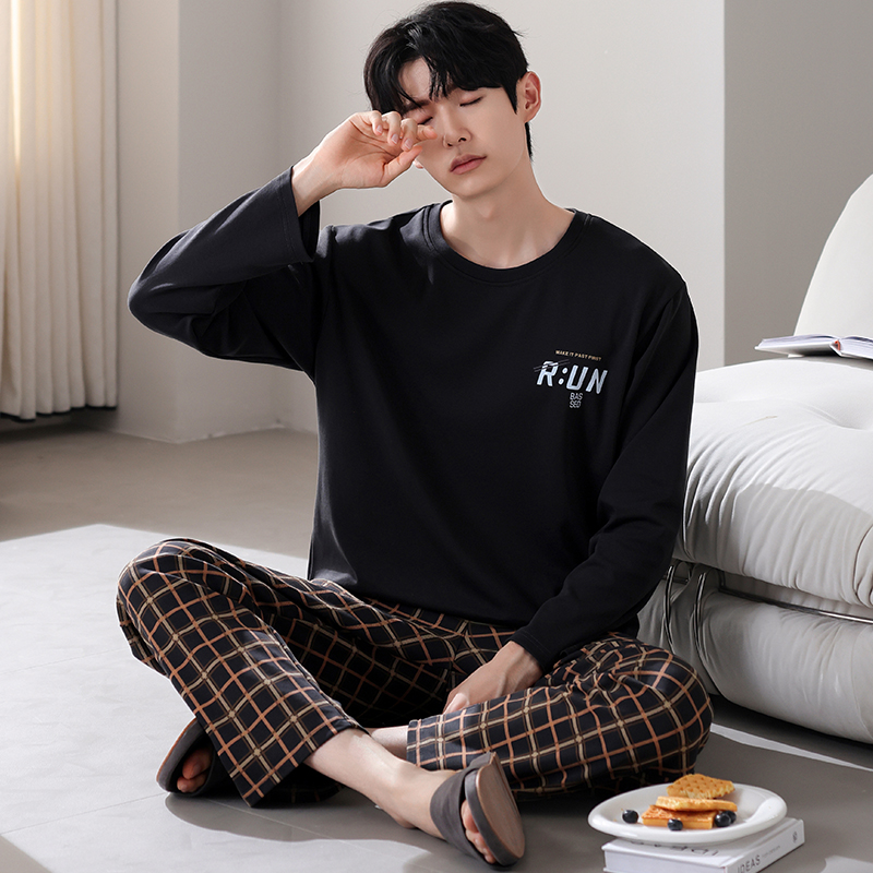 纯棉双面青少年男生可外穿家居服套装 长袖 睡衣春秋款 顶瓜瓜男士