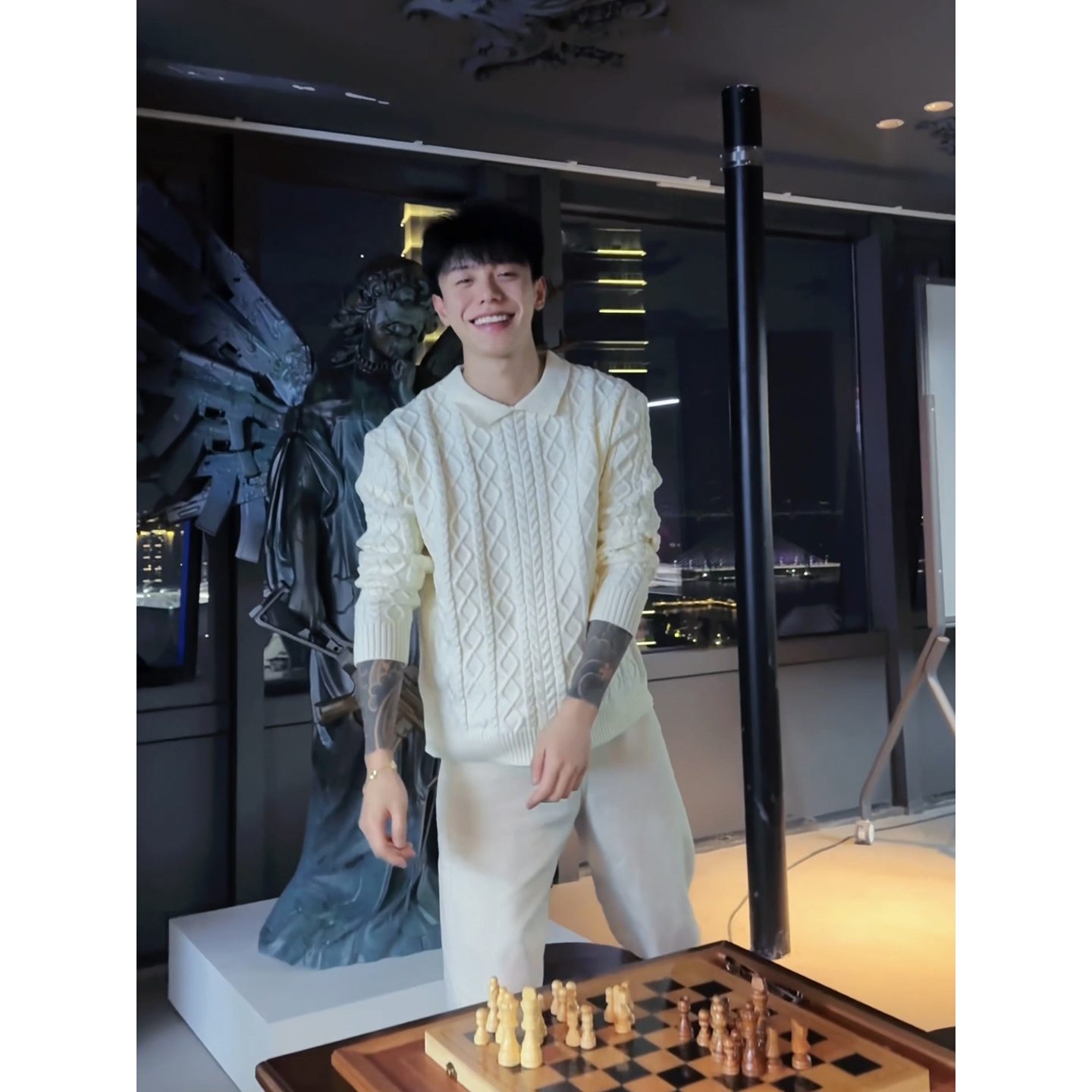 扭花翻领毛衣文艺慵懒风穿搭外套 秋季 海鸥领老钱风polo针织衫 男款