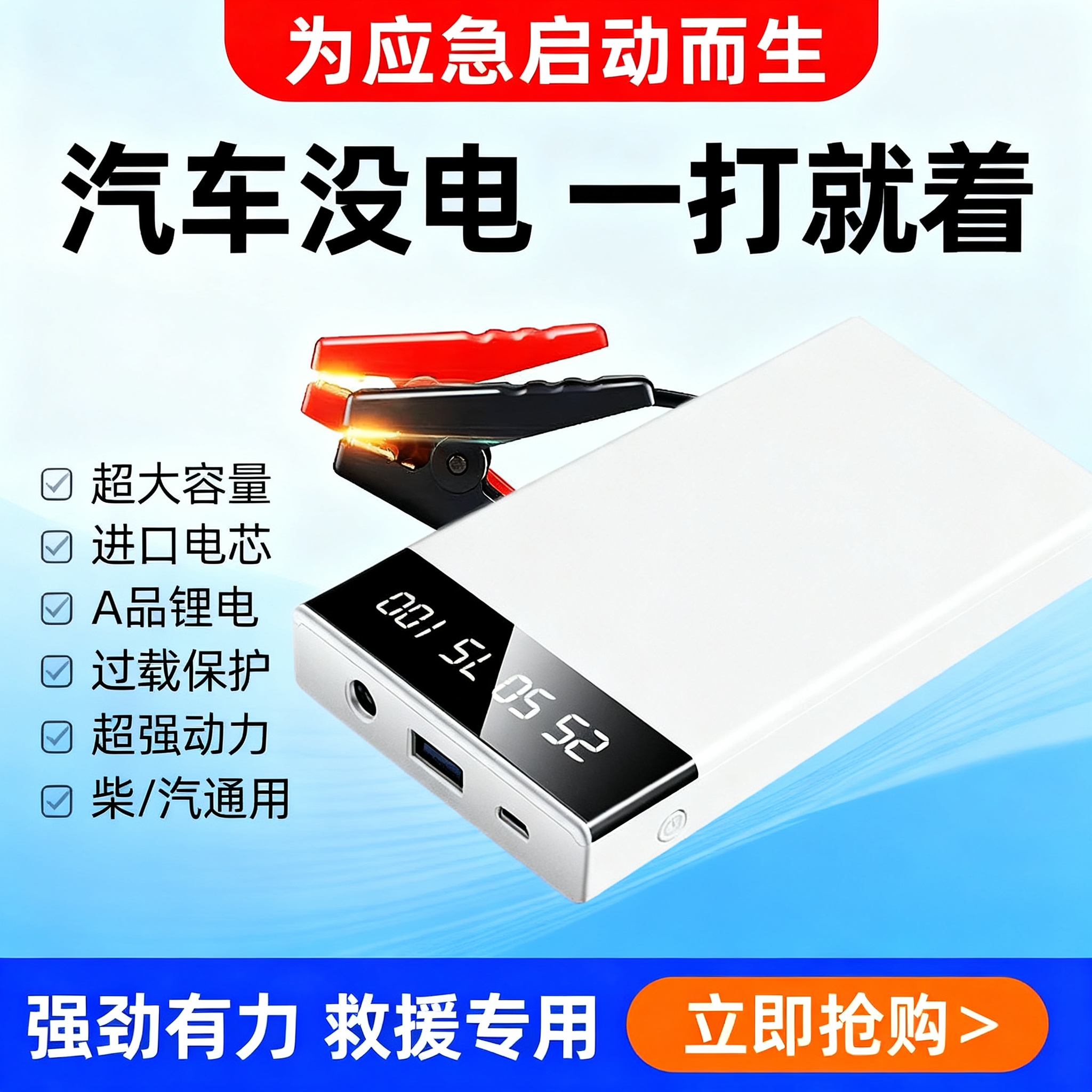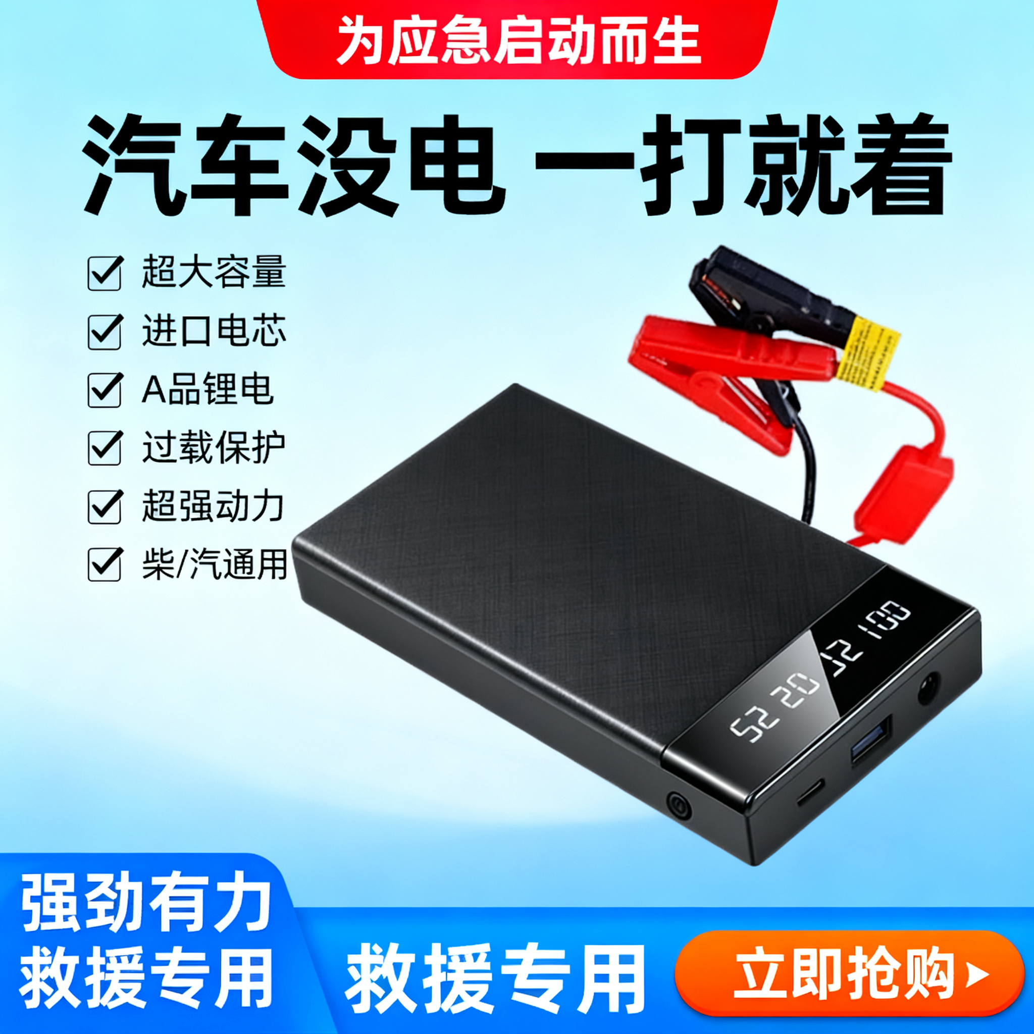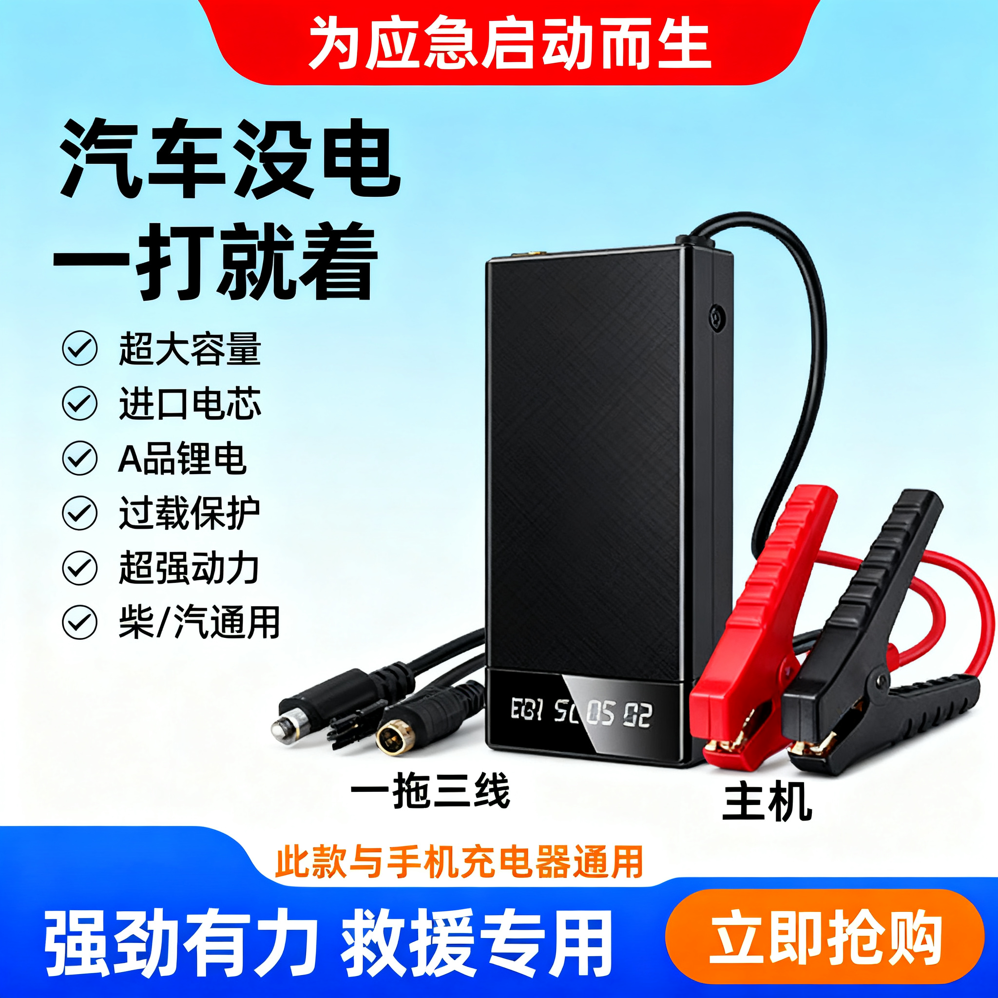 汽车应急启动电源12V大容量救援搭火线搭电宝强启电瓶充电宝