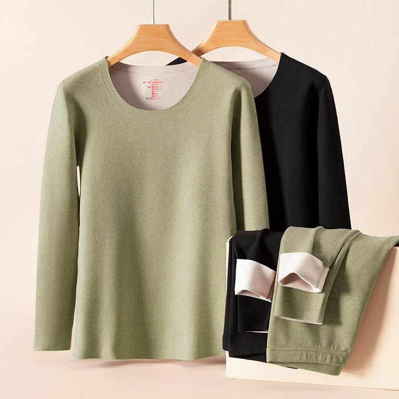 女 秋衣套装 无痕羊毛蚕丝保暖内衣女士加绒加厚德绒内穿打底衫 长袖