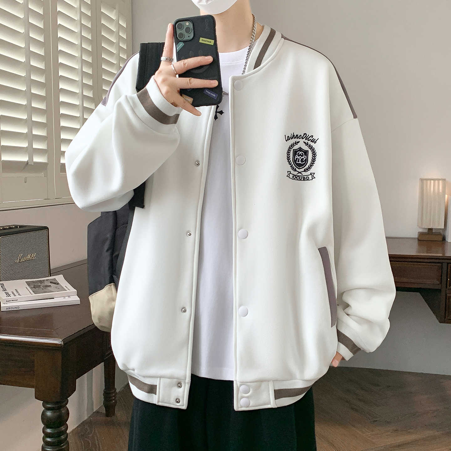 徽章刺绣棒球服男春秋季 夹克青少年宽松休闲外套 学院风撞色插肩袖