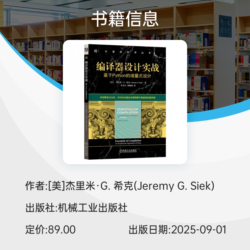 杰里米希克 编著 机械工业出版 增量式 编译器设计技术书 设计 基本概念数据结构 编译器设计实战:基于Python 编译器核心概念算法