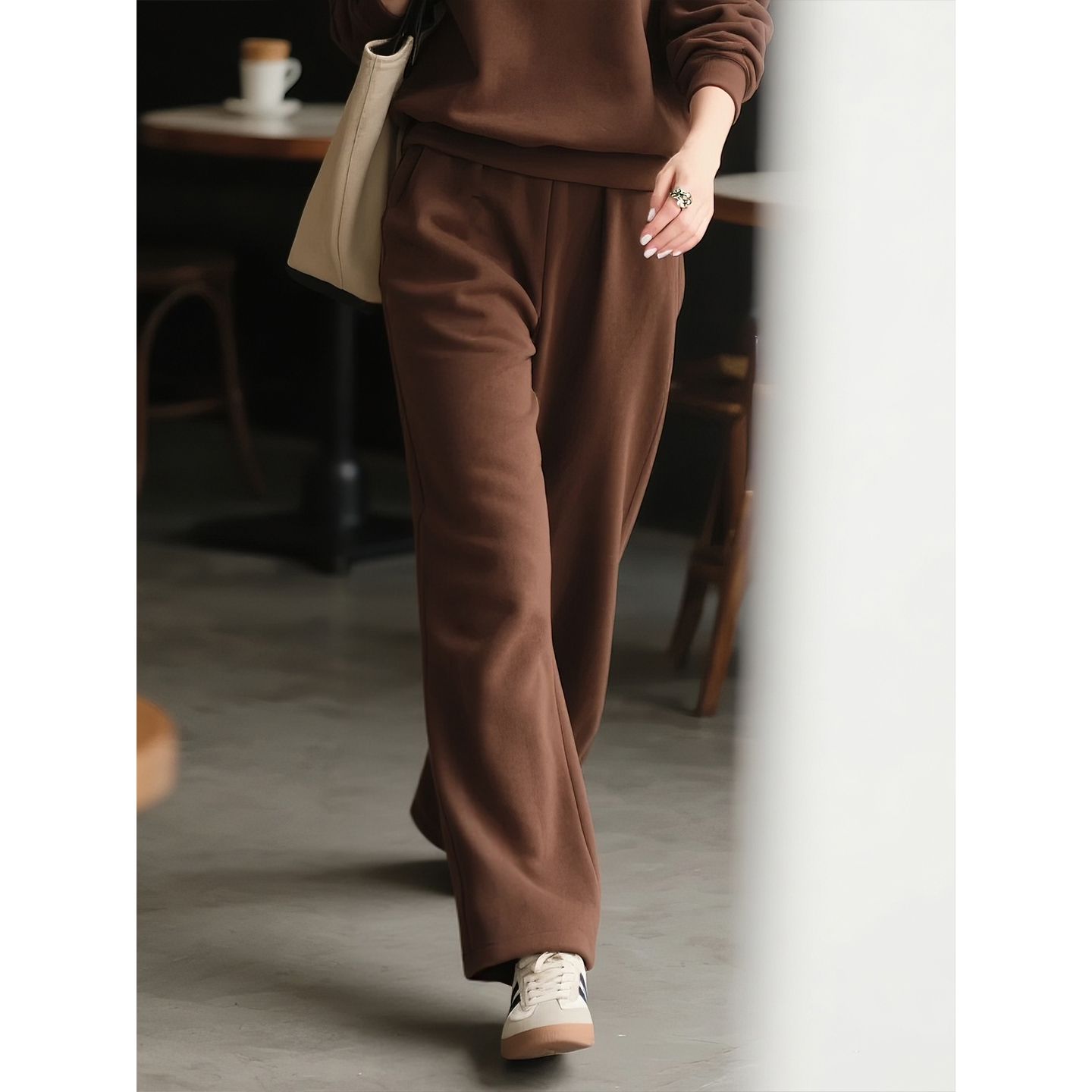 圆领休闲卫衣高腰阔腿裤 棕色早秋时尚 新款 女2025年秋季 两件套 套装