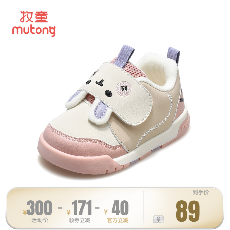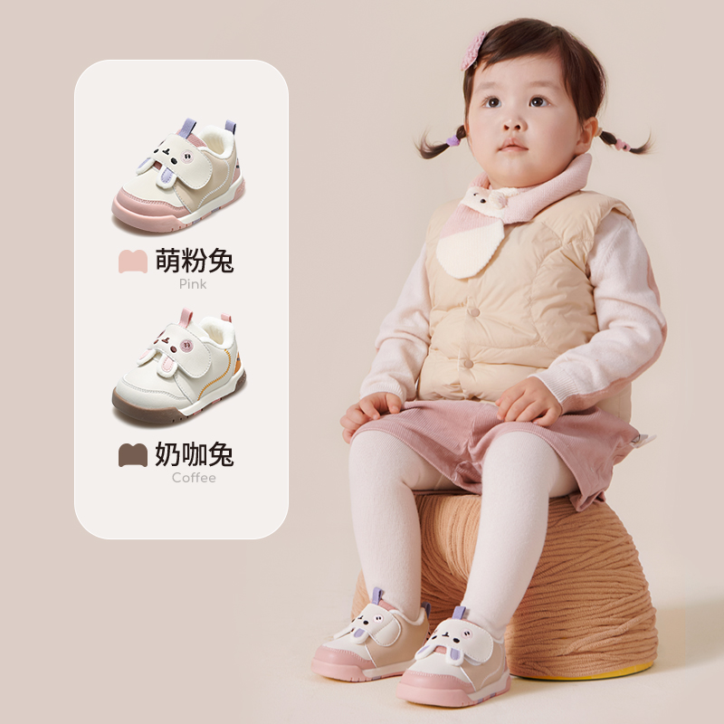 卡通小兔子加绒二棉鞋 女宝宝秋冬软底面包鞋 子 婴儿学步鞋 牧童童鞋