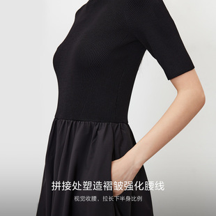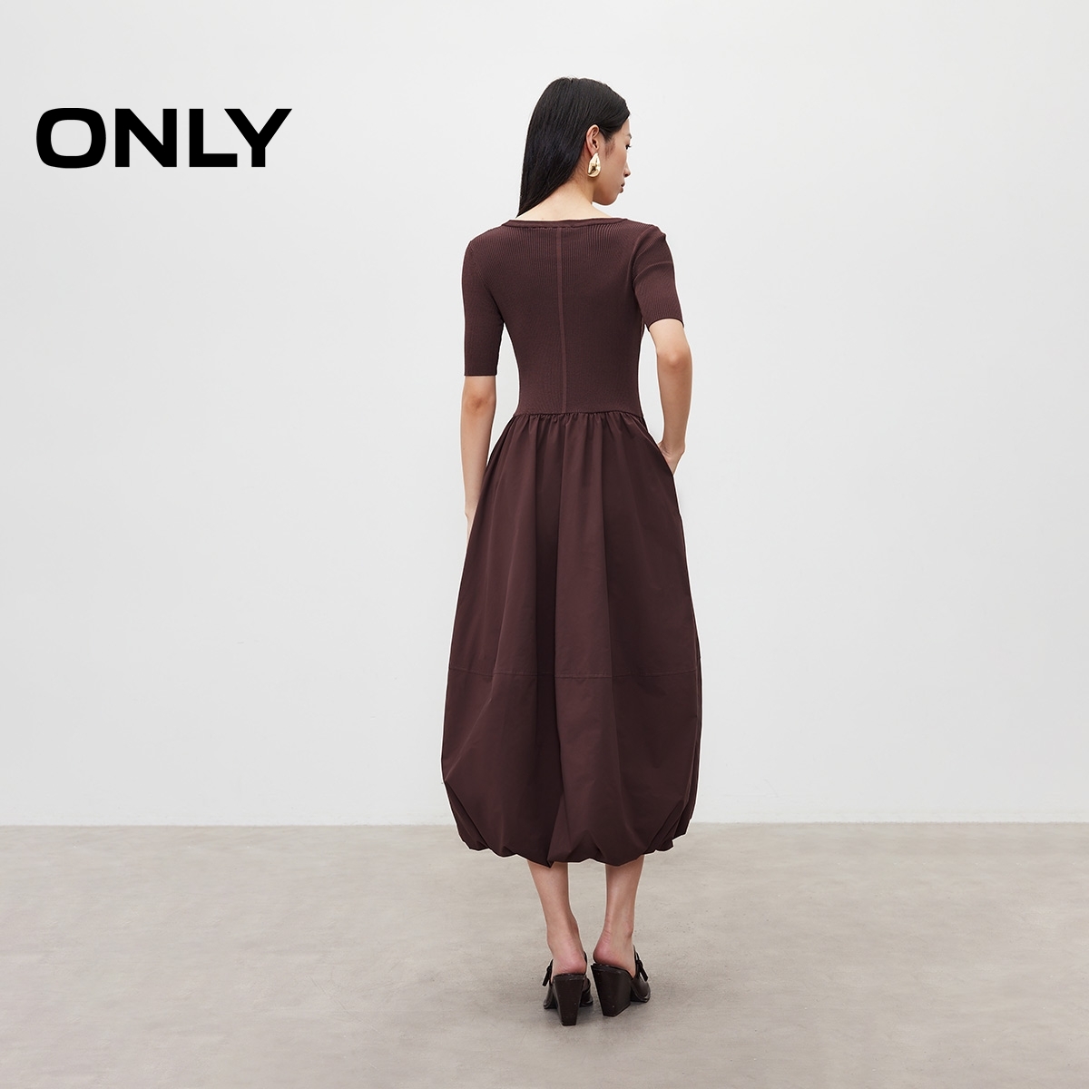 ONLY2025秋季 网纱内衬实用斜插口袋拼接纯色花苞长裙连衣裙女 新款
