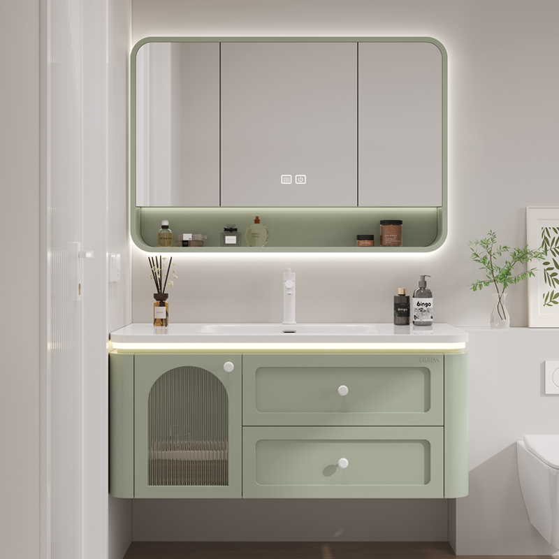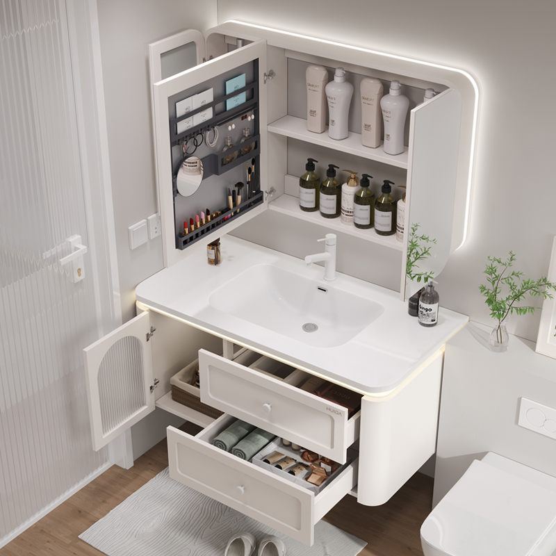 惠达橡胶木法式 浴室柜组合简约一体陶瓷盆洗漱台洗手脸盆池柜组合