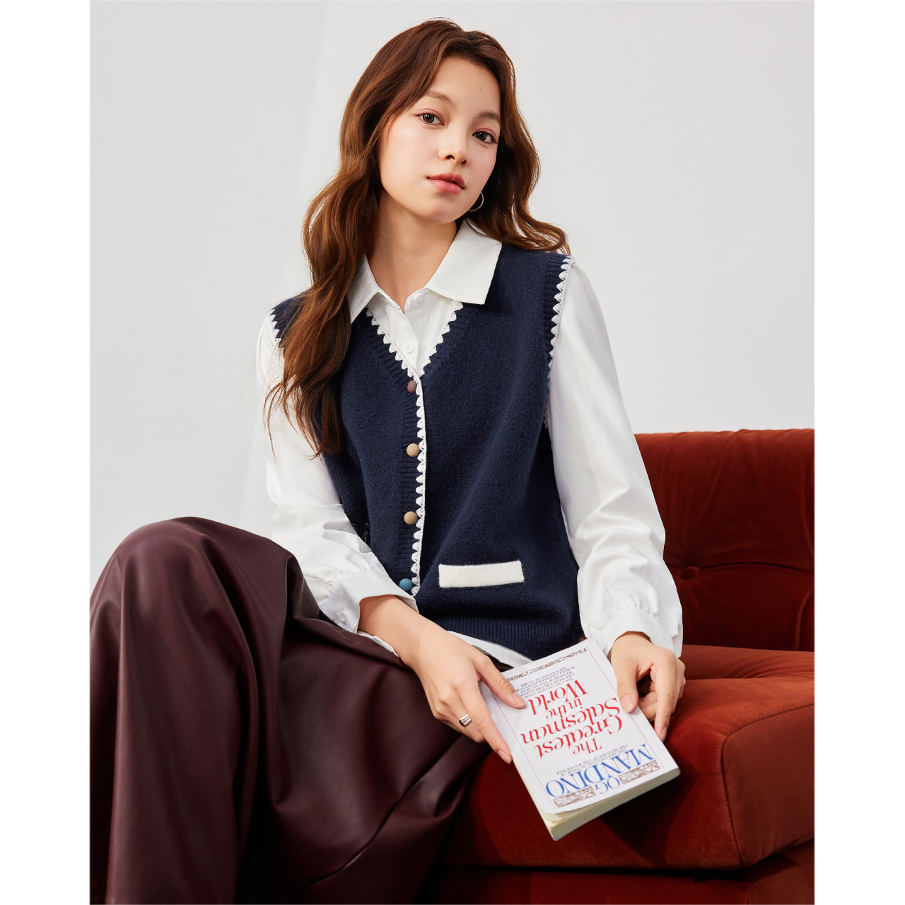 文艺休闲百搭毛织马甲衬衫 法式 两件套上衣 爱依服2025秋冬新款 IEF