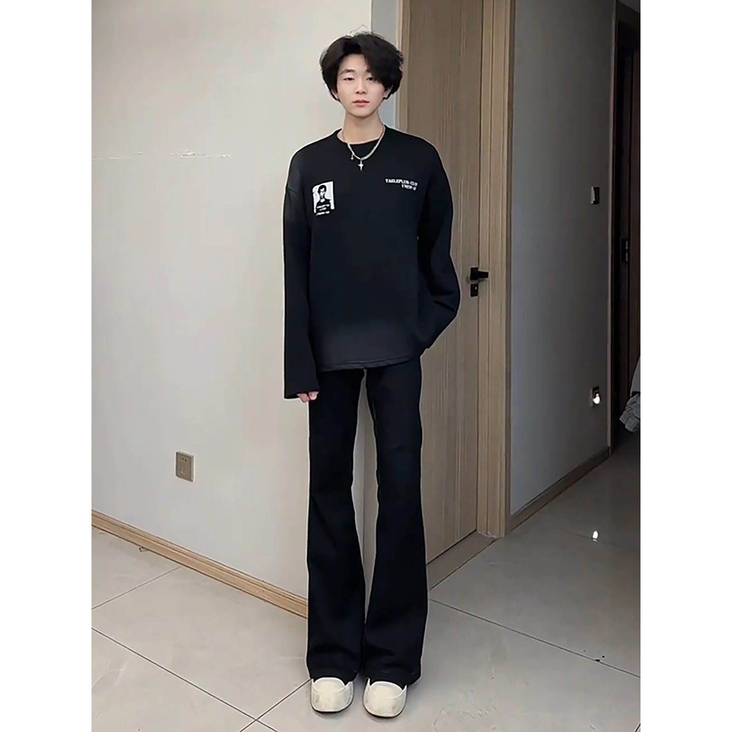显瘦裤 cleanfit秋季 修身 男vibe美式 子 bootcut黑色弯刀微喇牛仔裤