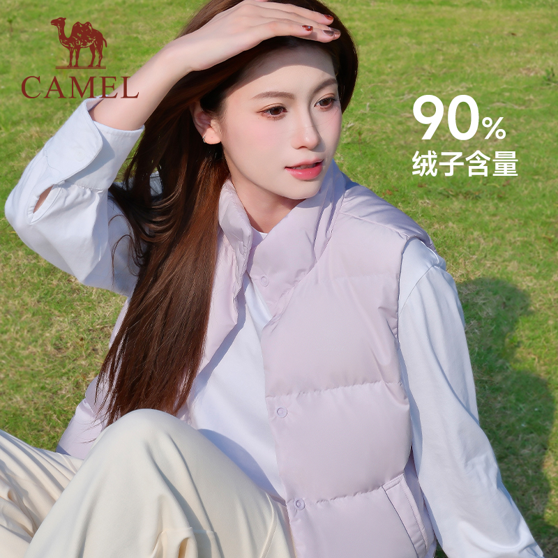 骆驼立领羽绒马甲2025秋冬新款 女士90%鸭绒蓬松度700羽绒内胆