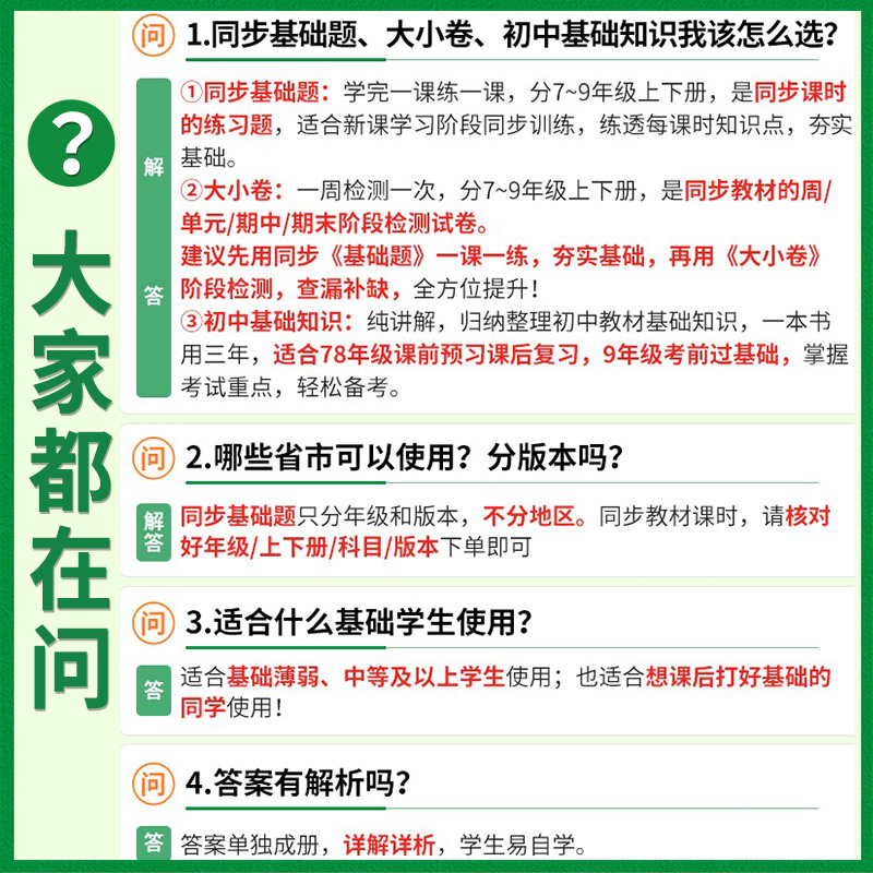 历史地理生物道德与法治人教版 语文英语外研版 教材同步中学教辅资料 初中必刷题七八九年级上册下册数学科学浙教版 浙江专用2026新版