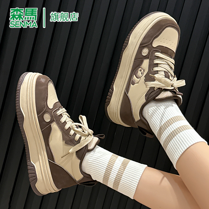 新款 爆款 百搭增高休闲鞋 森马女鞋 厚底板鞋 2025秋冬季 子女款 德训鞋