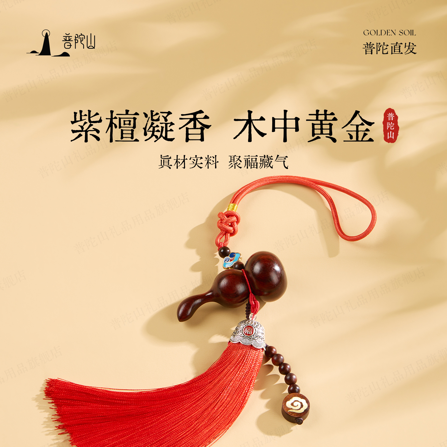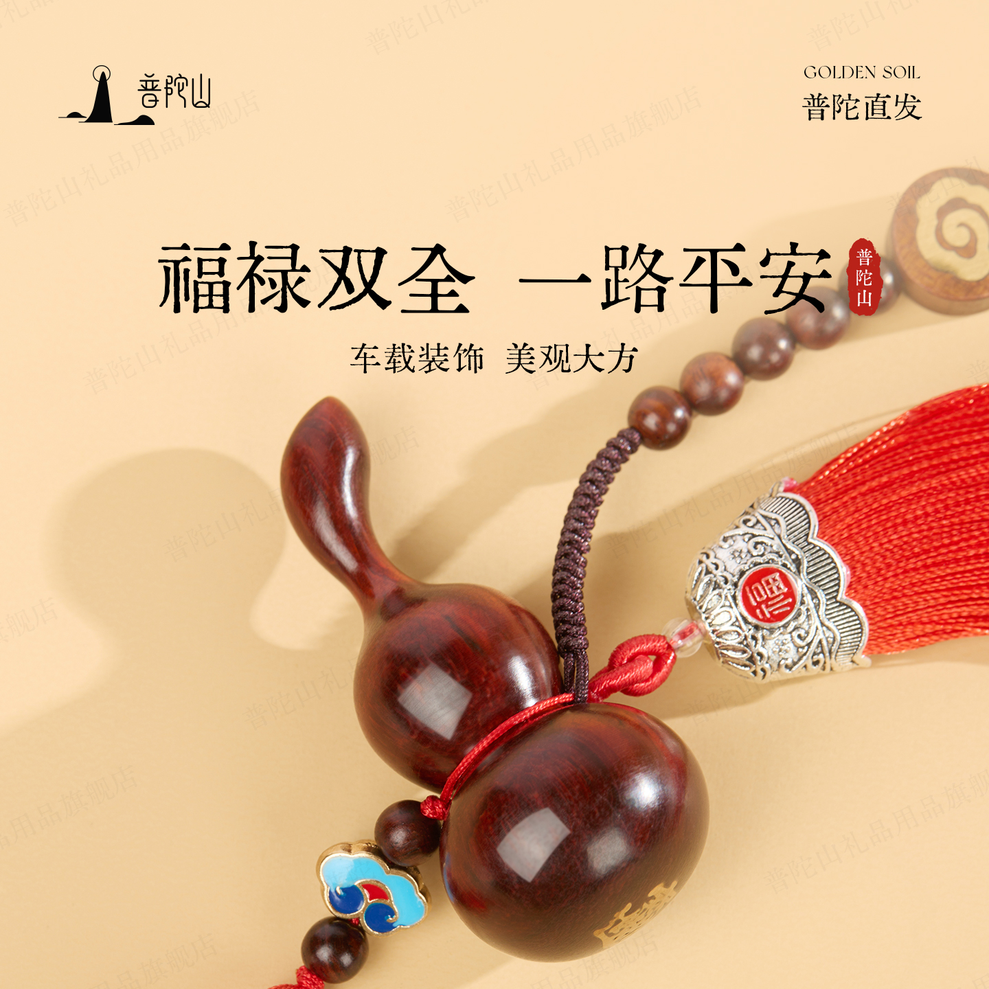 普陀山紫檀葫芦挂件汽车挂吊饰后视镜流苏男女车内装 饰创意饰品礼