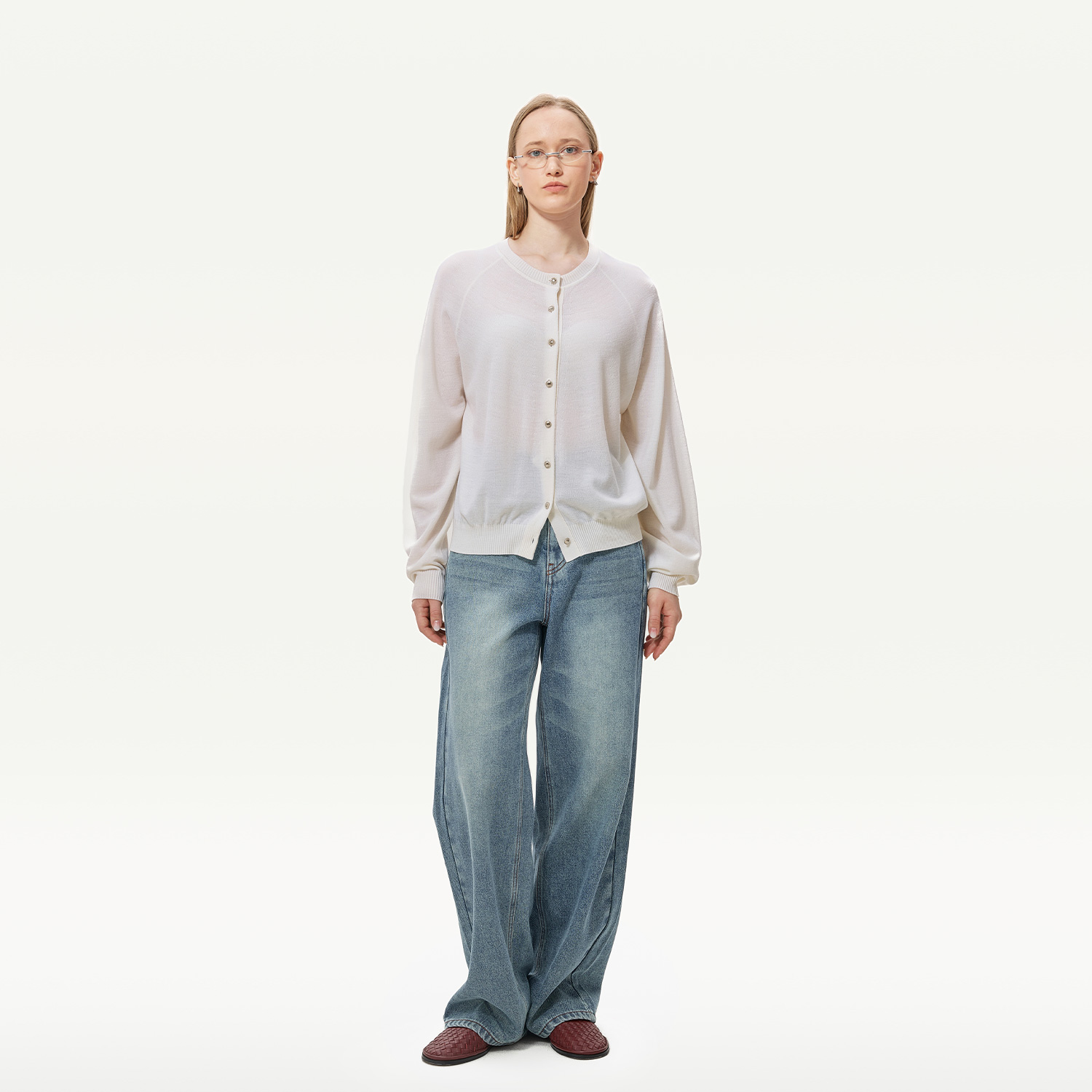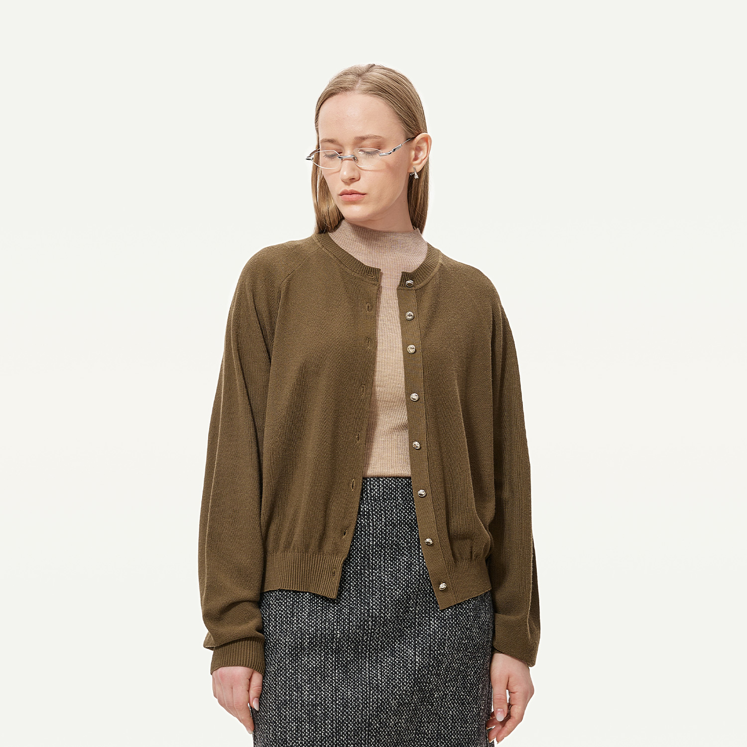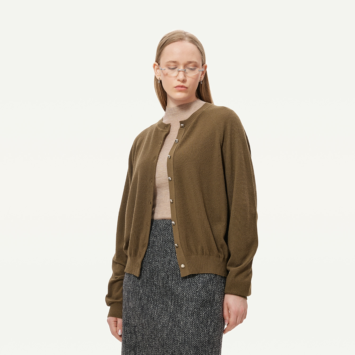 女241273 气质休闲圆领羊毛开衫 GOLDEN BARRY25秋100绵羊毛插肩袖