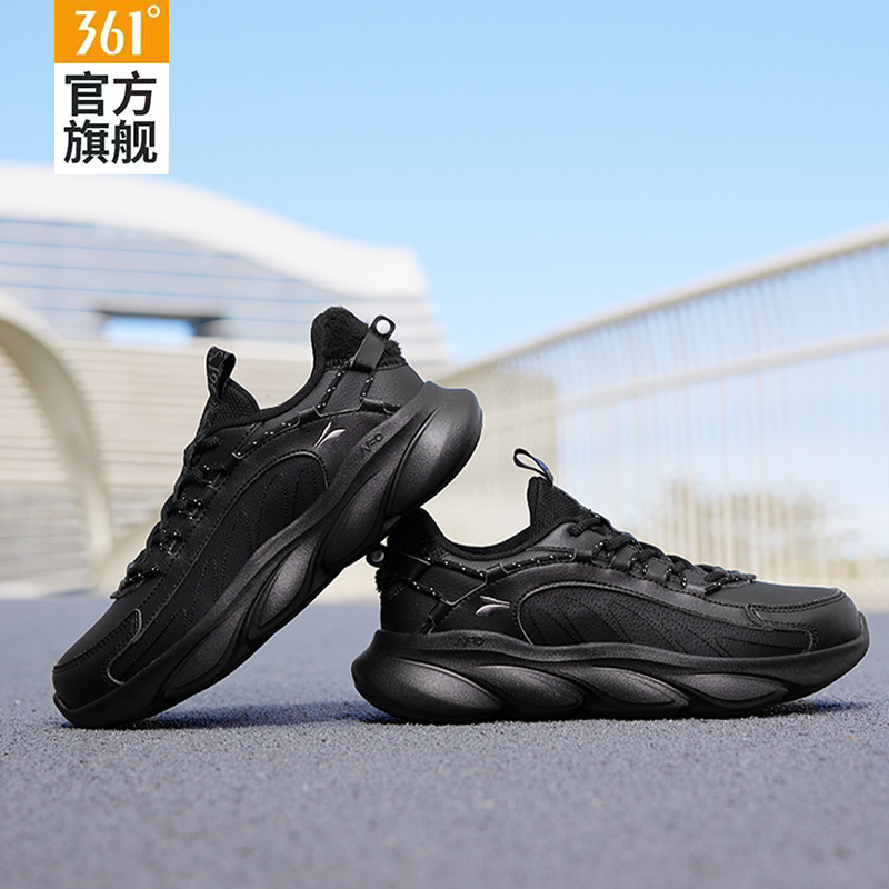 减震轻便软底休闲黑色爸爸跑鞋 秋冬皮面防水跑步鞋 男鞋 乔丹运动鞋