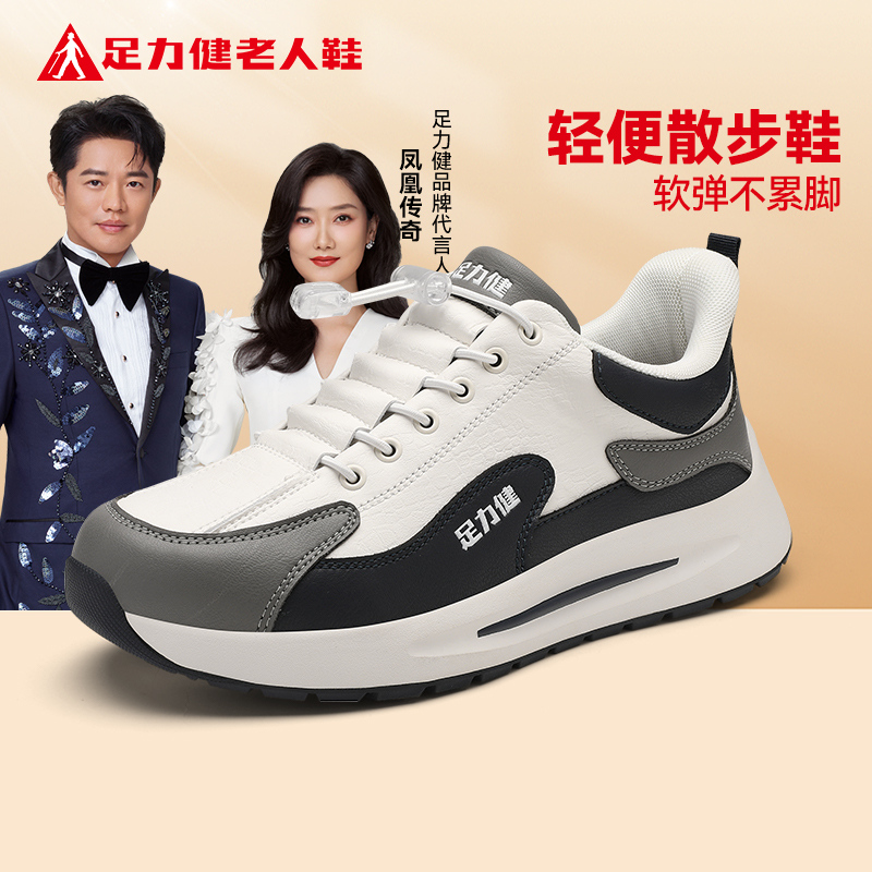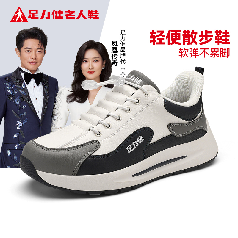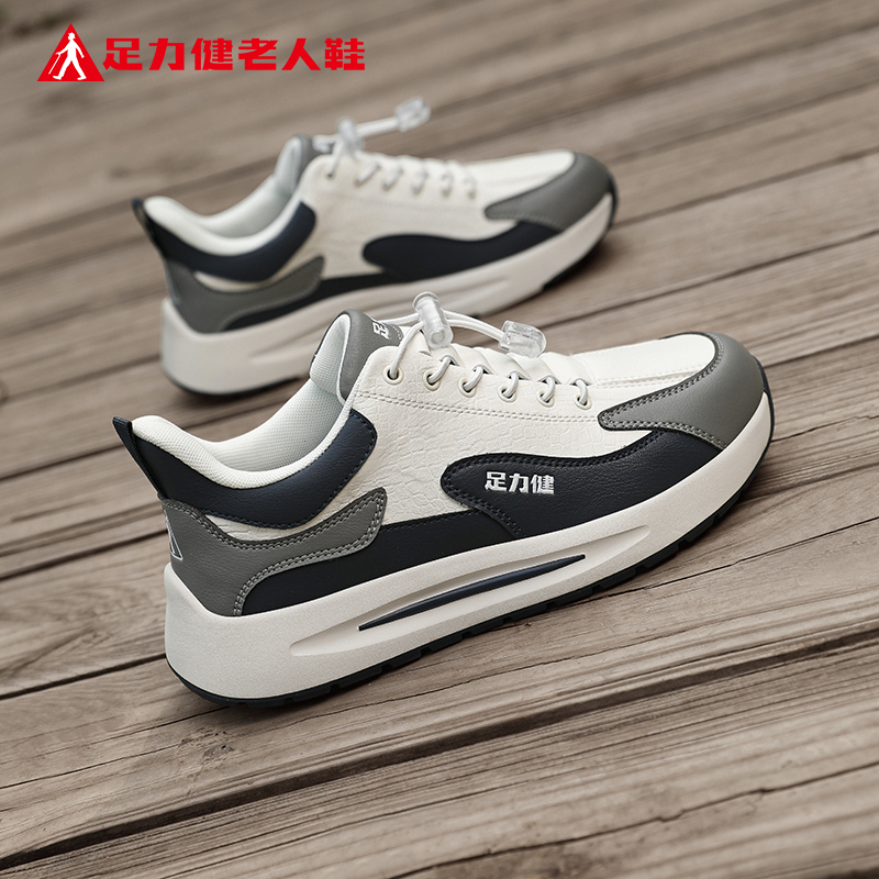 皮面防水运动健步男鞋 足力健老人鞋 秋季 中年爸爸鞋 官方旗舰店正品