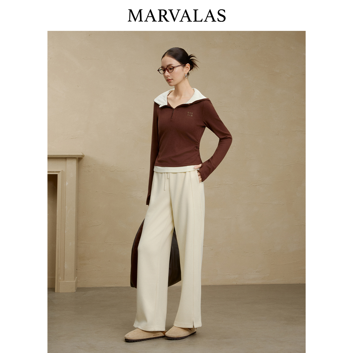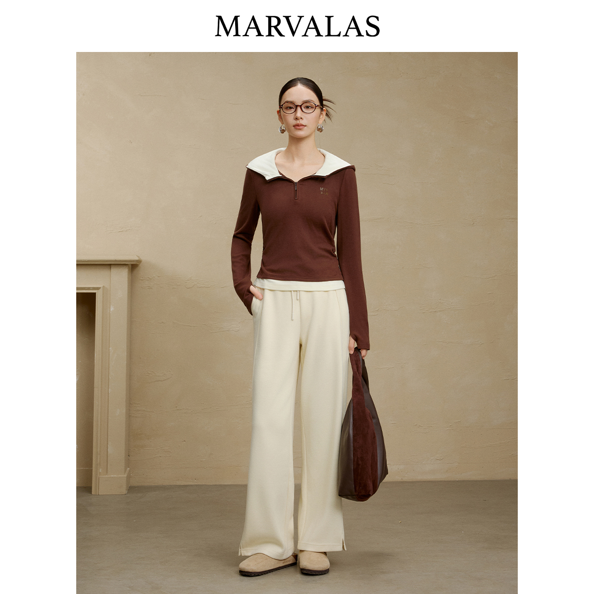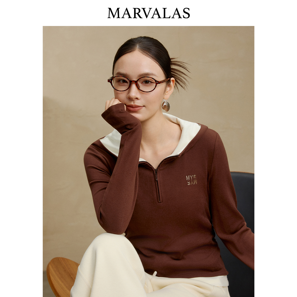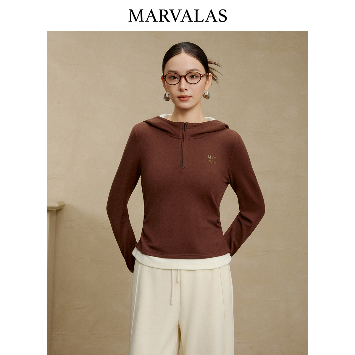 百搭上衣修身 时尚 针织卫衣外套 新款 曼德诗拼色连帽卫衣女2025冬季