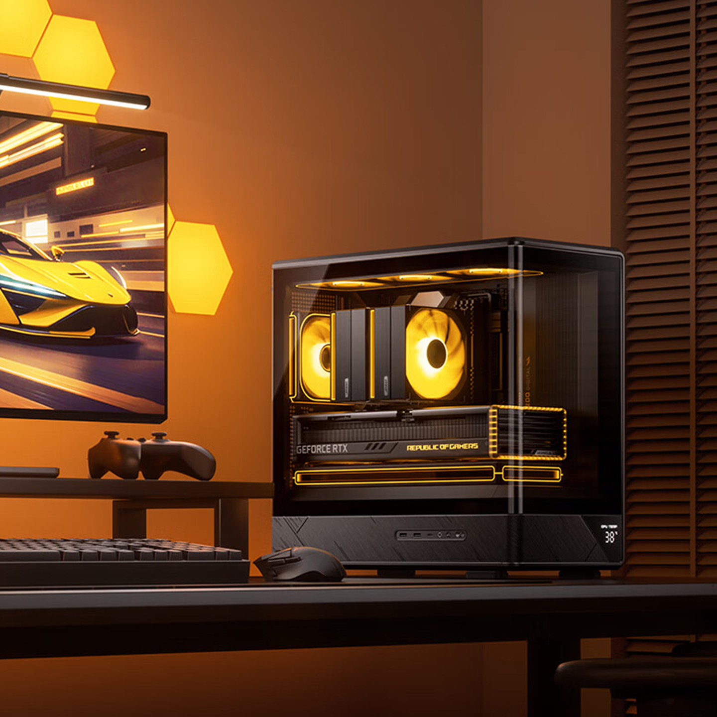 乔思伯D200曲面海景房台式 MATX数显屏幕240水冷电竞机箱 电脑机箱