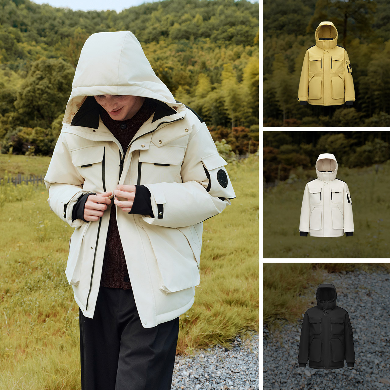 加厚保暖休闲外套J 连帽潮流短款 鸭鸭露营羽绒服男士 2025秋冬反季