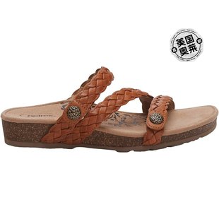 美国奥莱 棕色皮革 自营aetrexJosie Ginger女士棕色皮革编织凉鞋