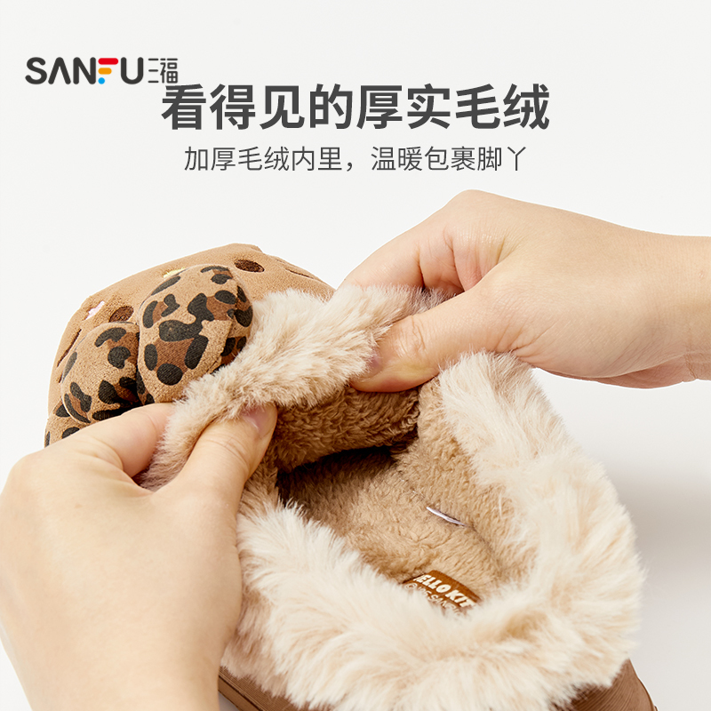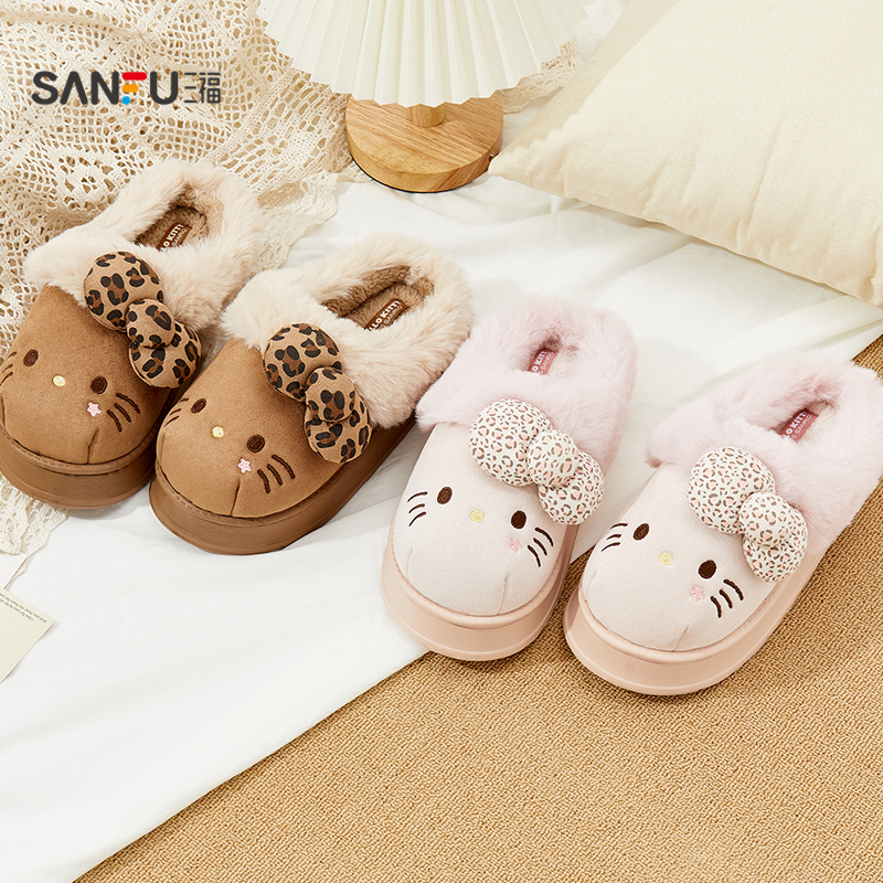 845715 拖鞋 三福三丽鸥豹纹凯蒂猫外穿半包拖 生活日用家居棉鞋
