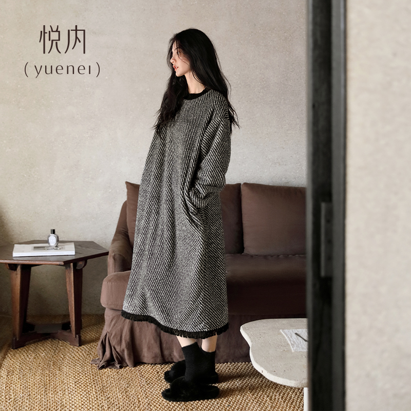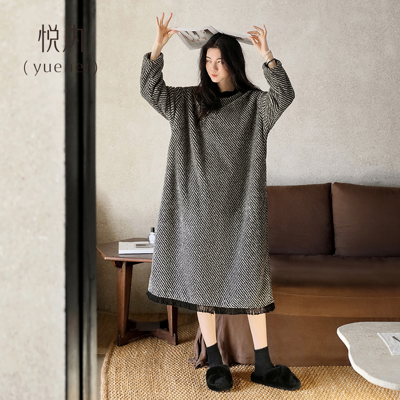 流苏 法兰绒加绒加厚保暖珊瑚绒加长款 悦内睡裙女士睡衣秋冬季 冬款
