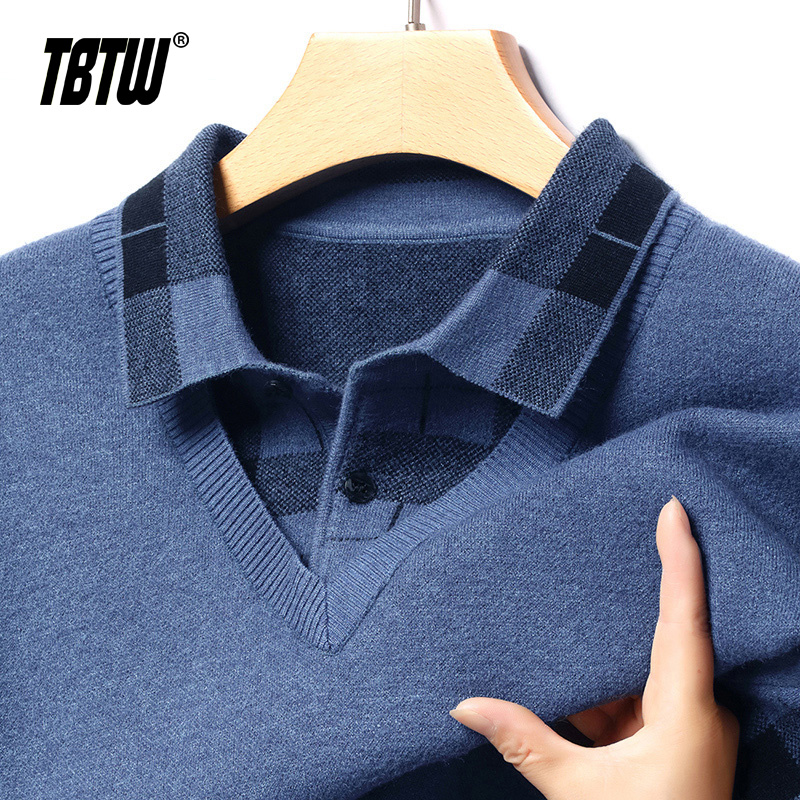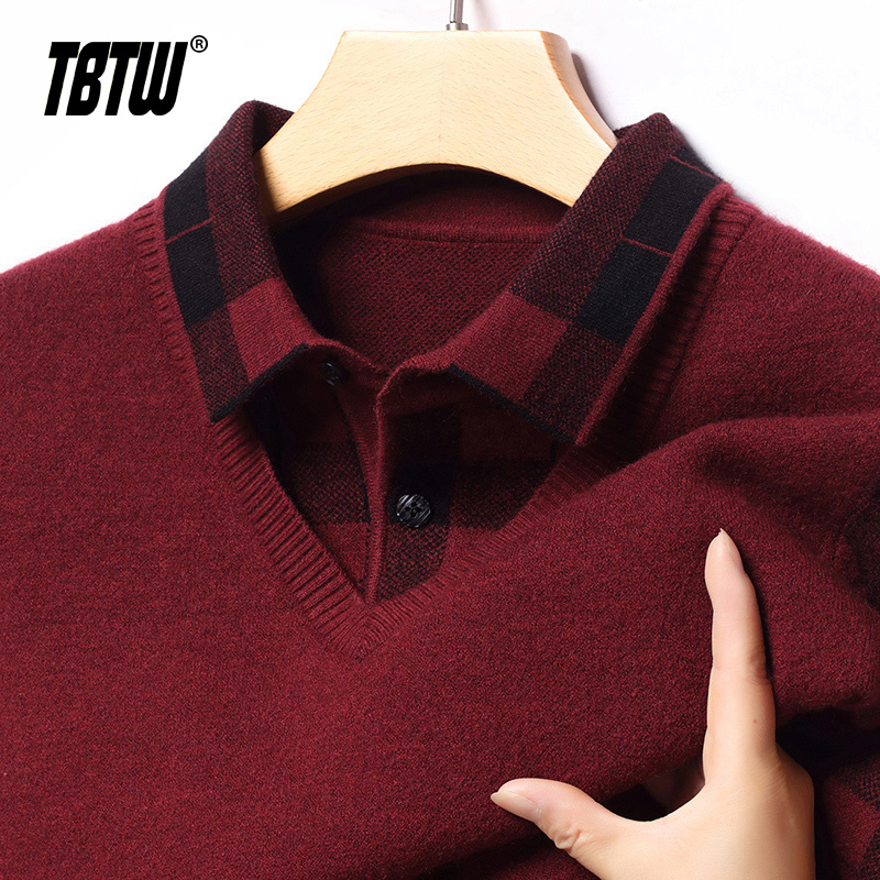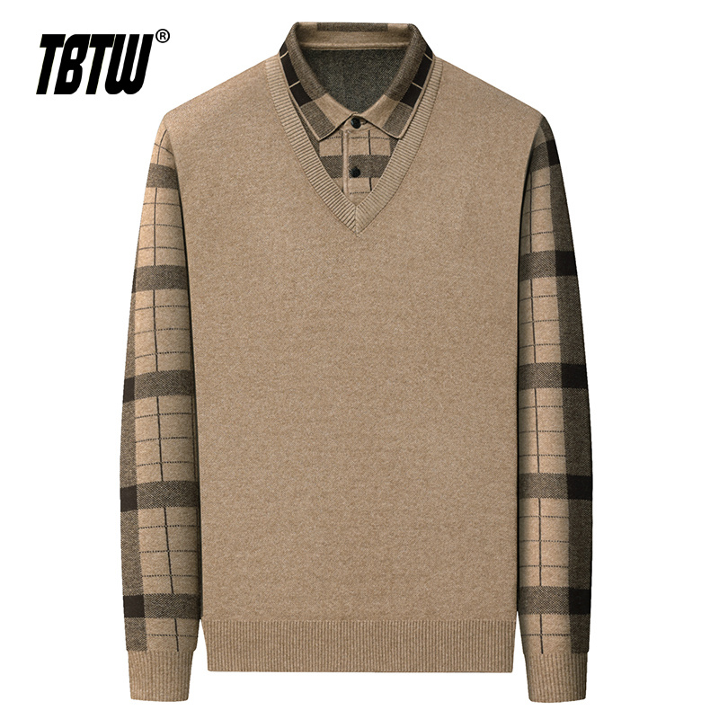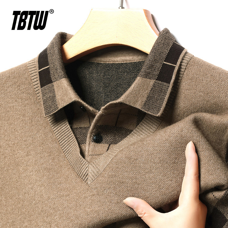 领爸爸保暖内搭 2025假两件商务风毛衣加厚衬衫 TBTW毛衣男士 秋冬季
