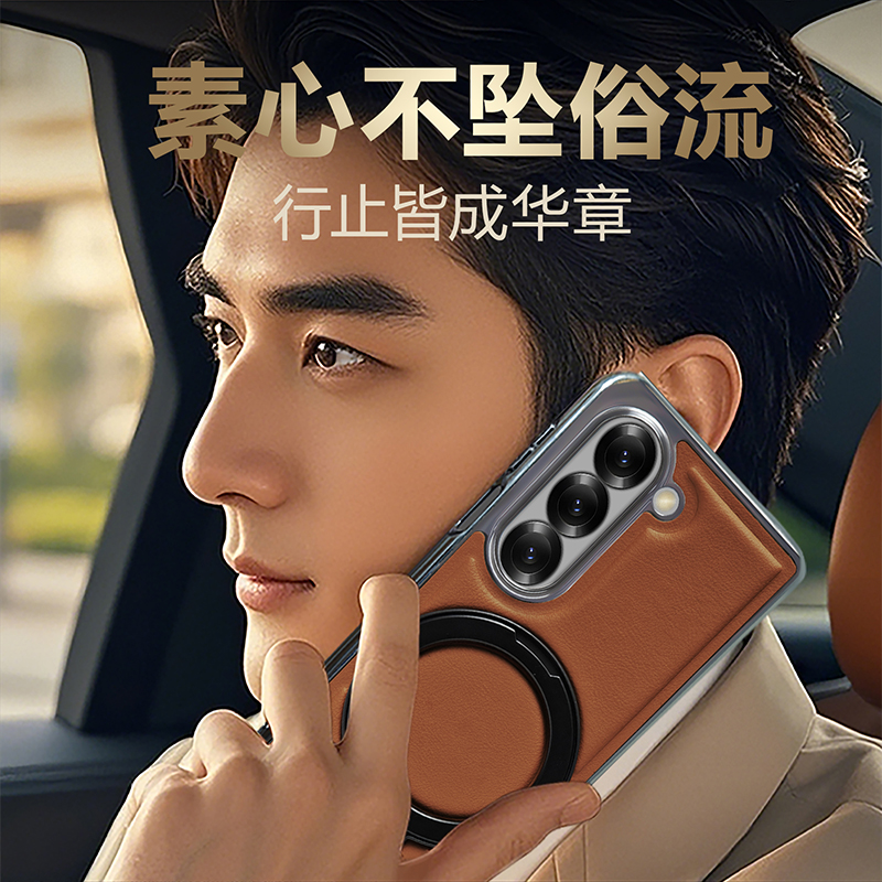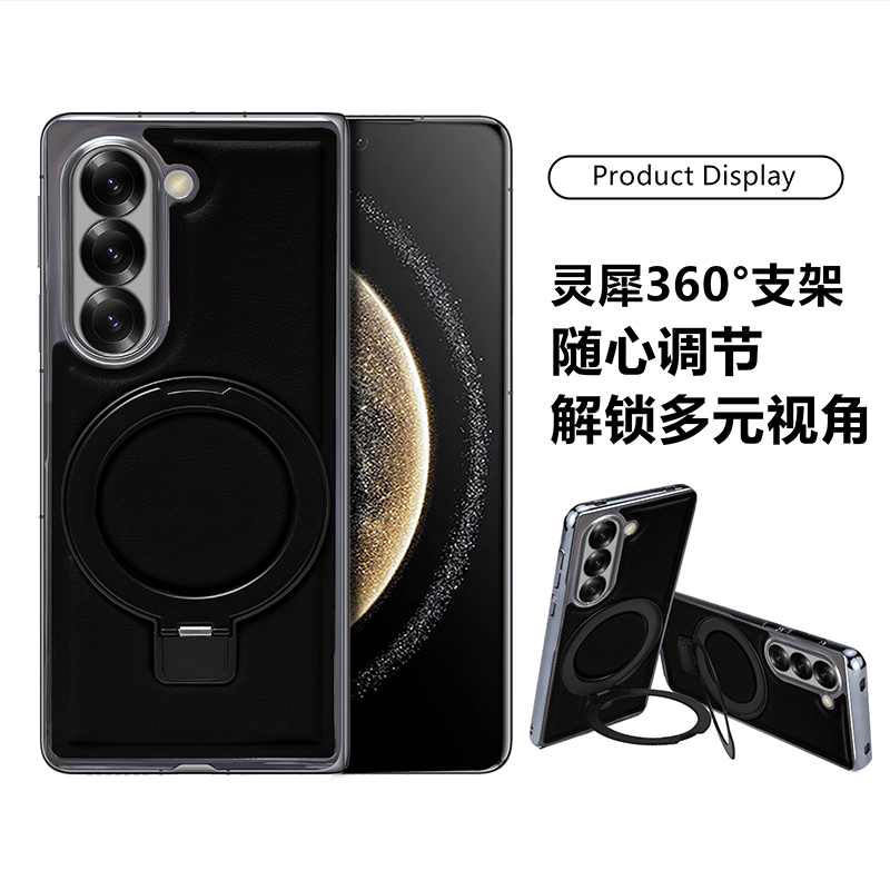 折叠屏galaxy 男女w25商务电镀素皮防摔潮保护套SM 4磁吸支架超薄时尚 F956 Fold5 适用三星zFlod6手机壳新款