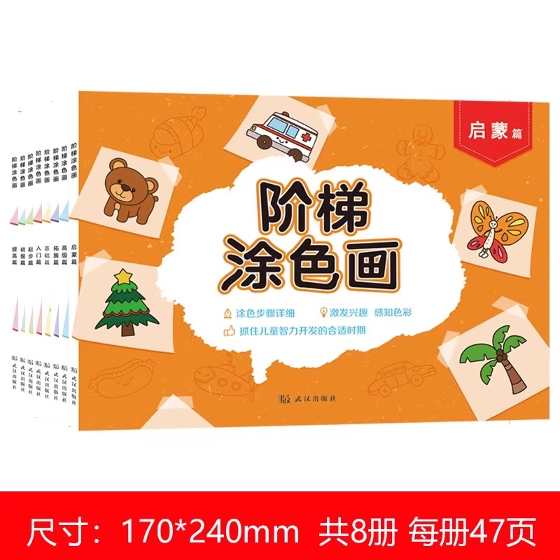 分步学画阶梯儿童涂色本宝宝学画画书 儿童阶梯涂色画全8册幼儿启蒙涂色绘画2 8由易到难儿童涂鸦学画画幼儿涂色绘画本