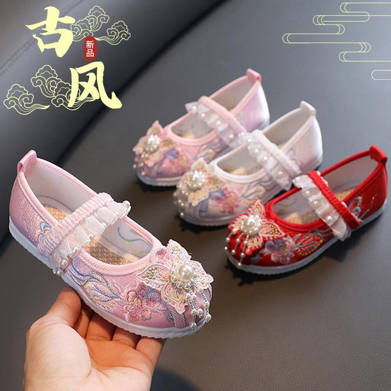 女童绣花鞋 子古装 宝宝手工汉服软底国风 古风公主鞋 老北京儿童布鞋