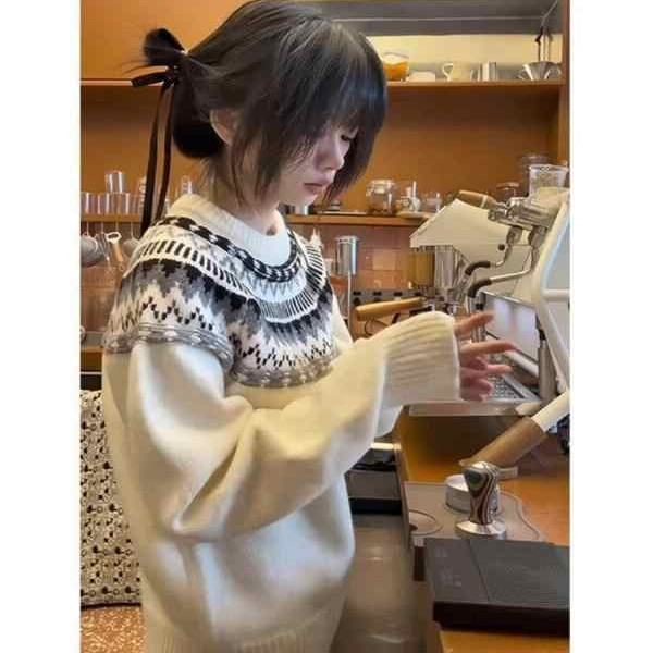 潮牌美式 慵懒风高级感套头针织衫 情侣外套 冬季 费尔岛圆领毛衣男款