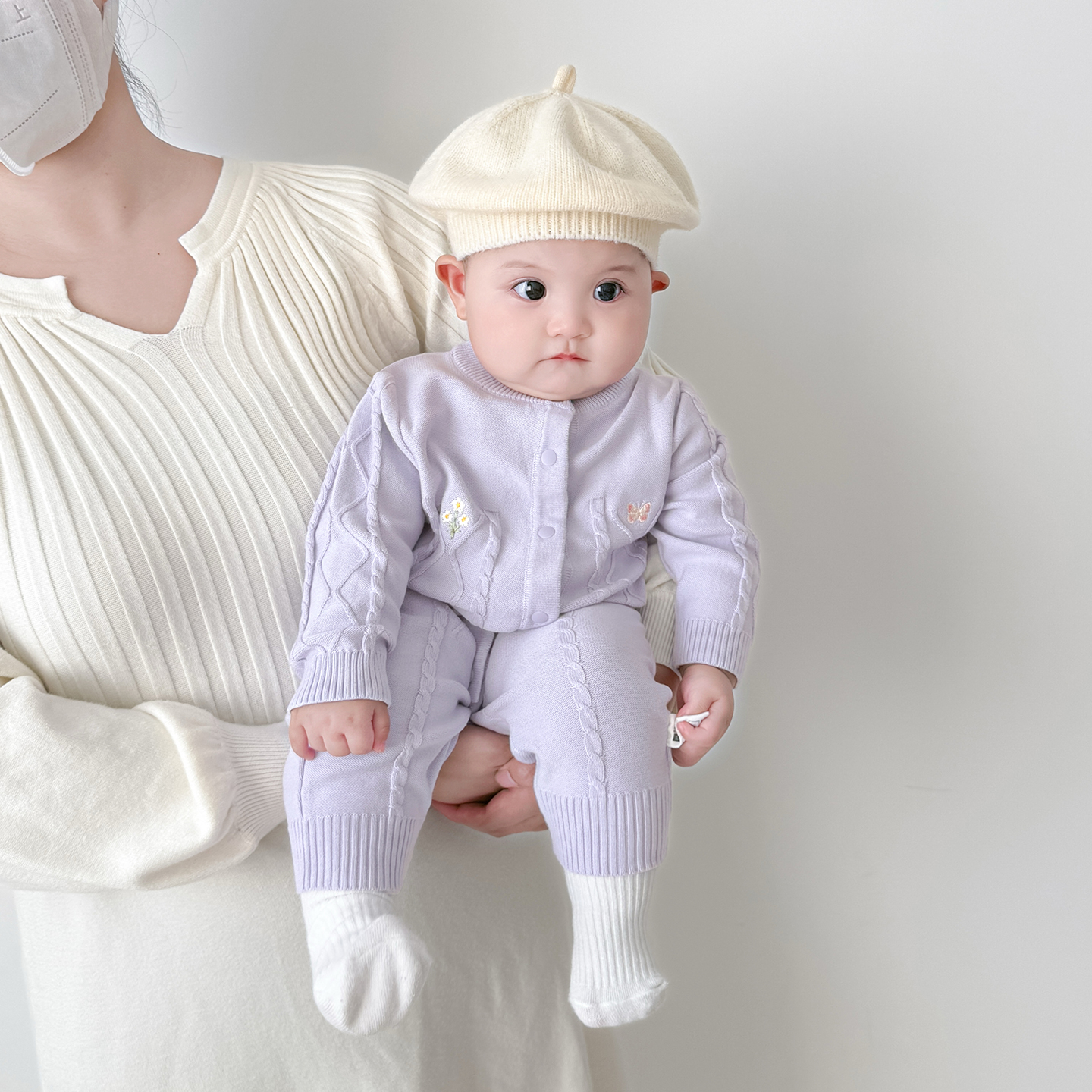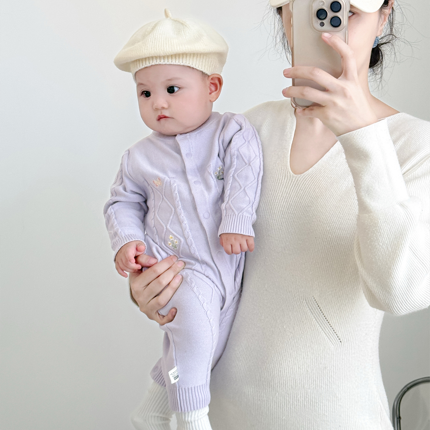 波步婴儿针织连体衣2025秋冬款 外穿爬服 女宝宝洋气哈衣新生儿冬装