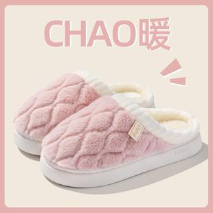 室内家居家用保暖加绒毛毛情侣厚底春秋男 2025新款 拖鞋 女士冬棉季
