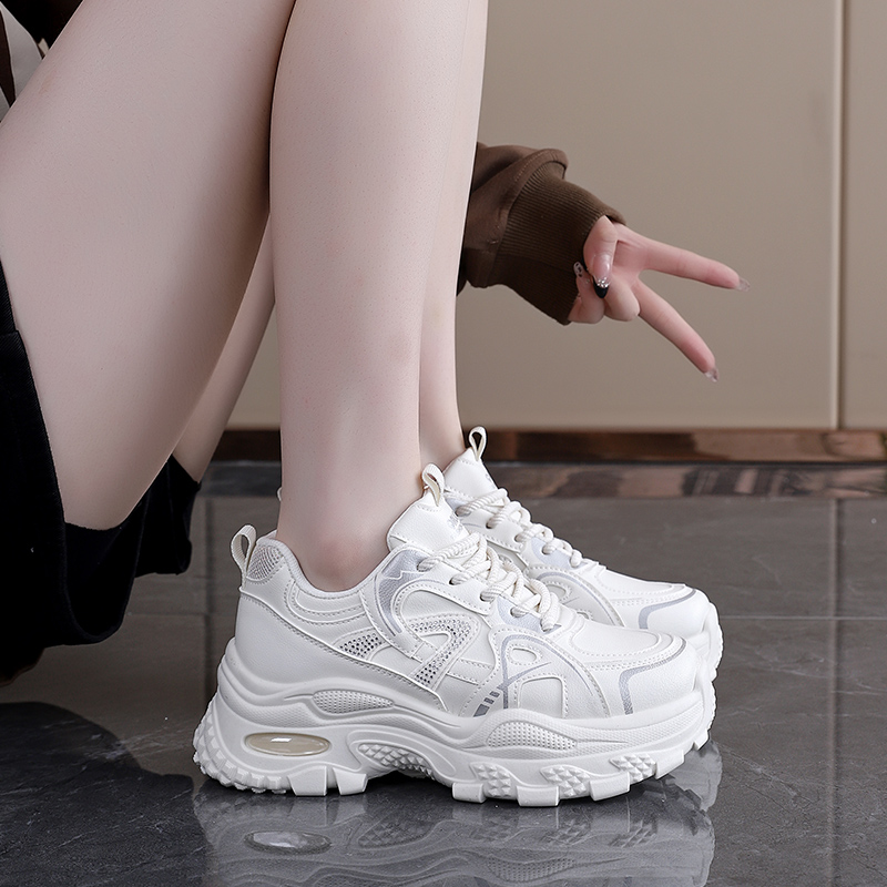 2025新款 银色老爹鞋 秋女鞋 厚底增高休闲鞋 银色运动鞋 斯凯奇熊猫鞋