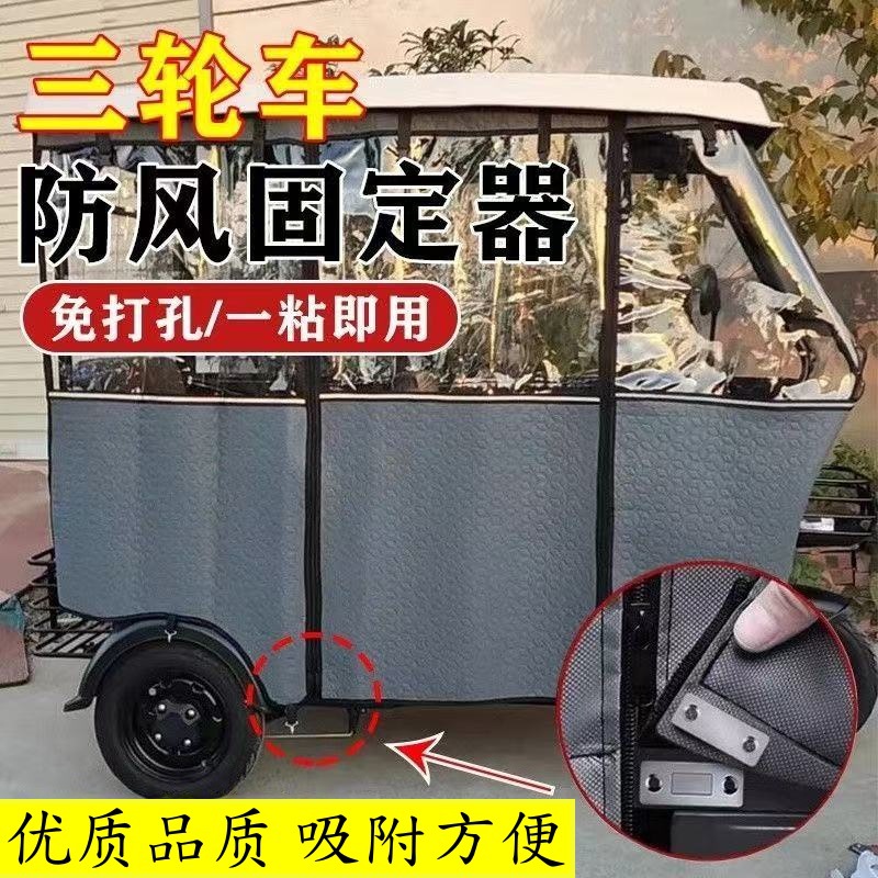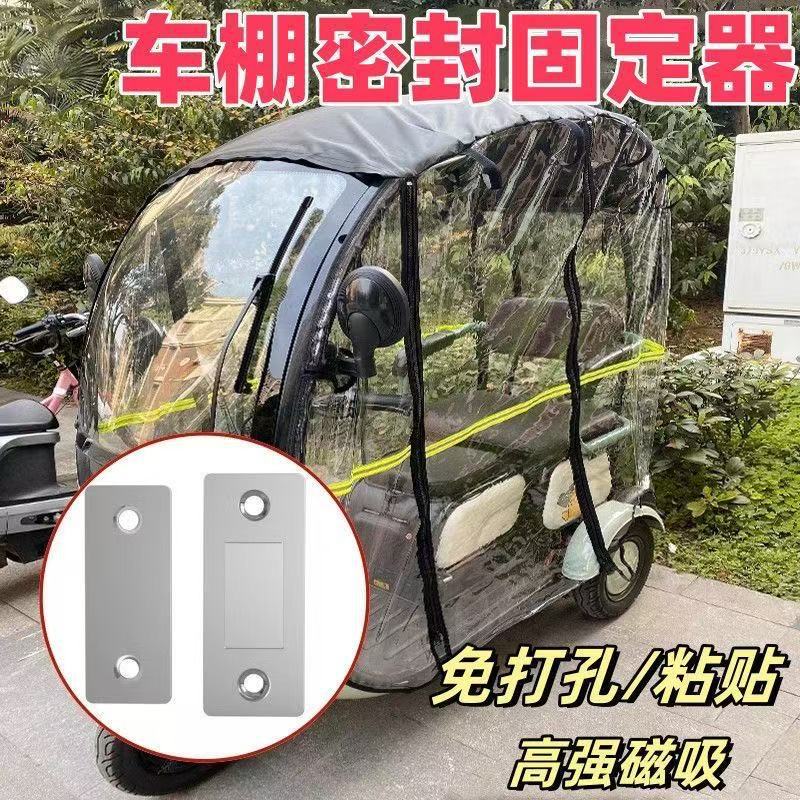三轮车棚固定器电动车快递车车棚遮雨门帘围帘前车篷挡风雨帘磁吸