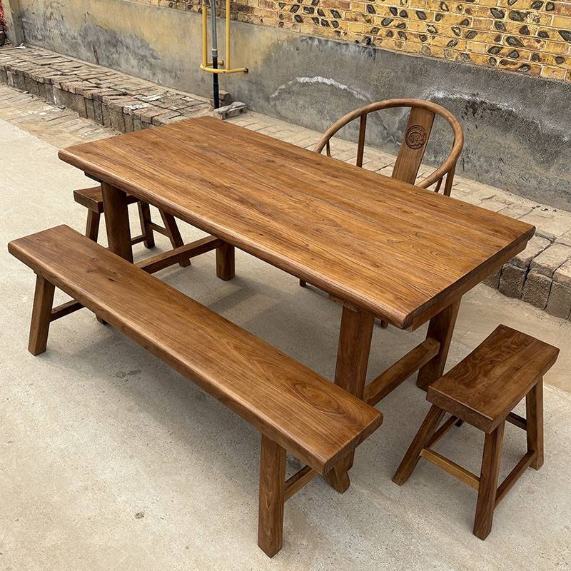 老榆木桌子实木茶桌复古茶台家用书桌原木桌面吧台板饭店长条餐桌