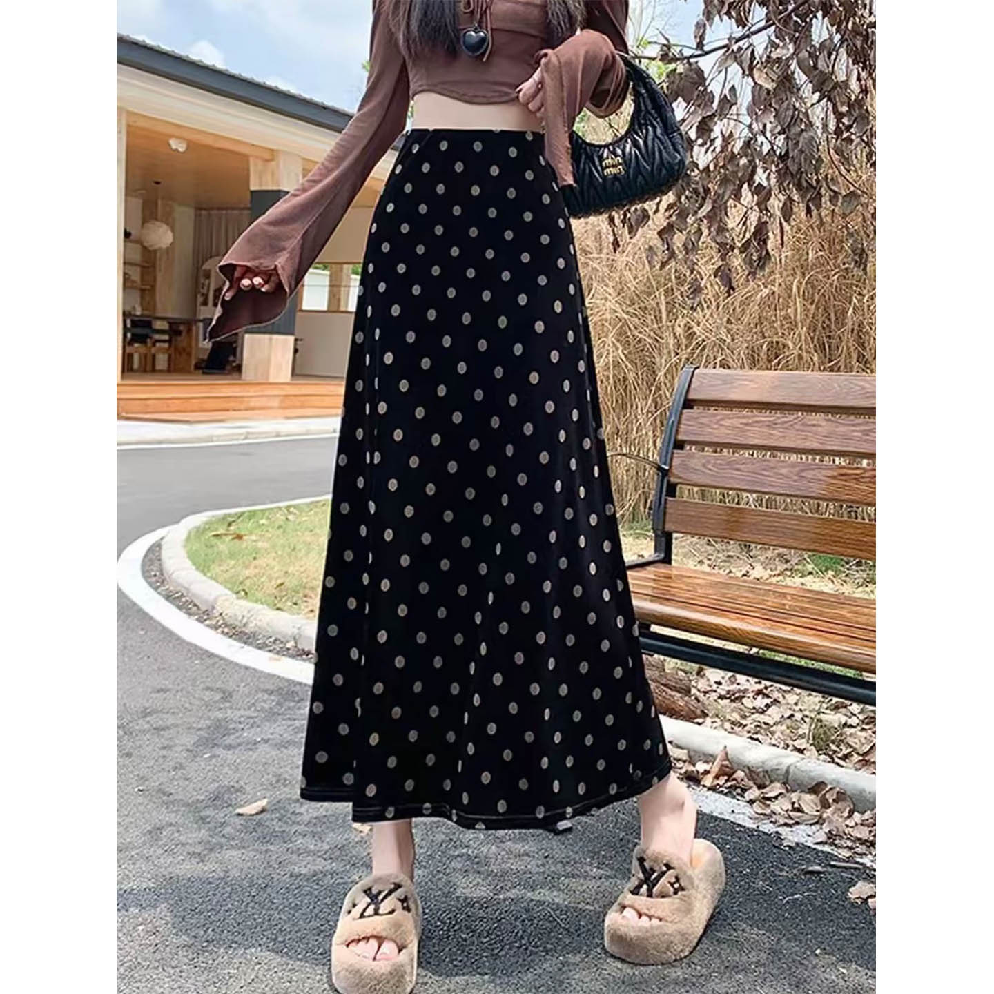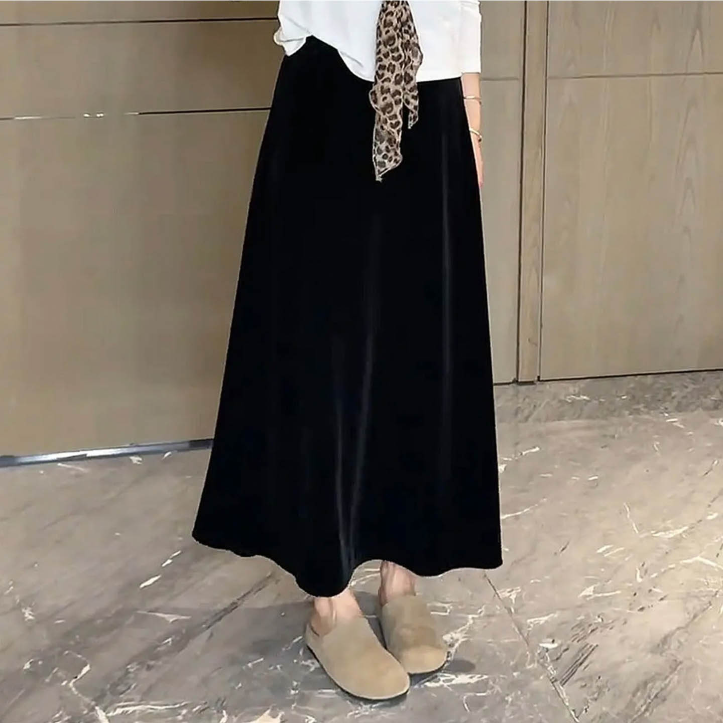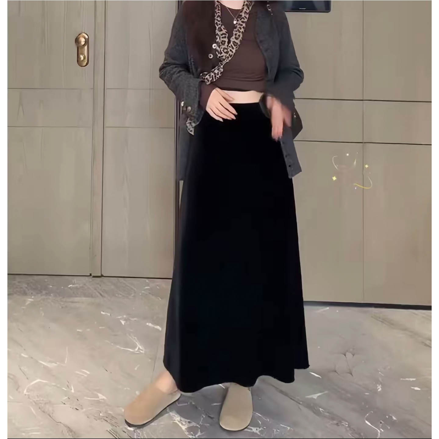 高品质洋气A字裙遮肉显瘦 法式 韩版 高级感气质丝绒半身裙女中长款
