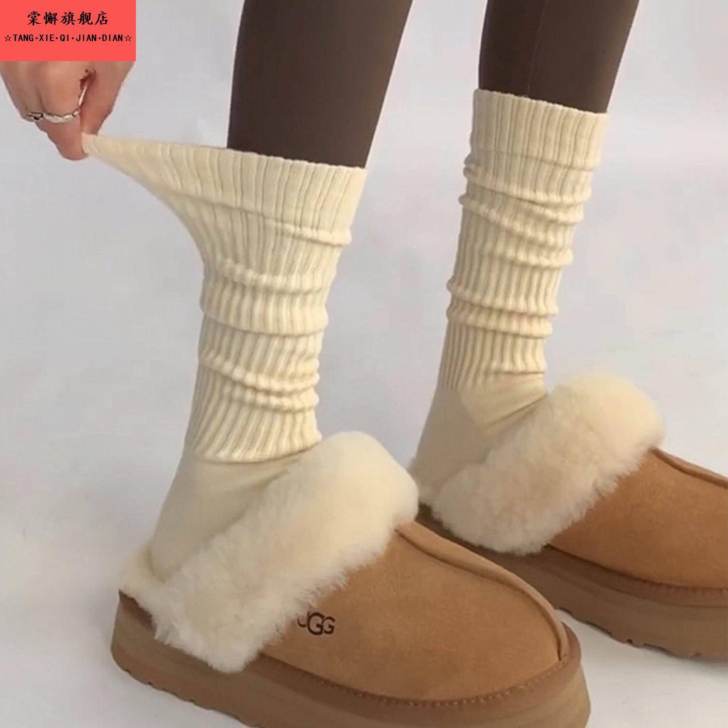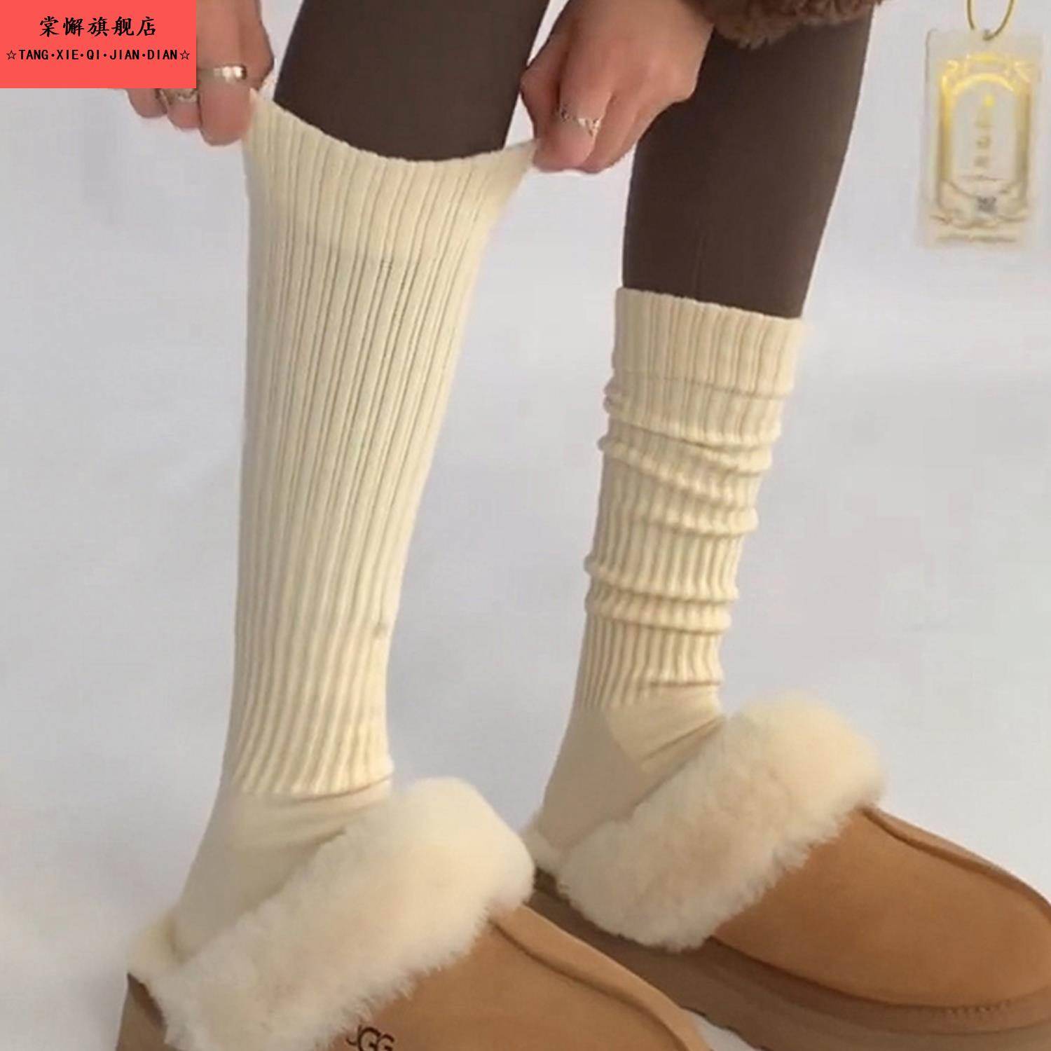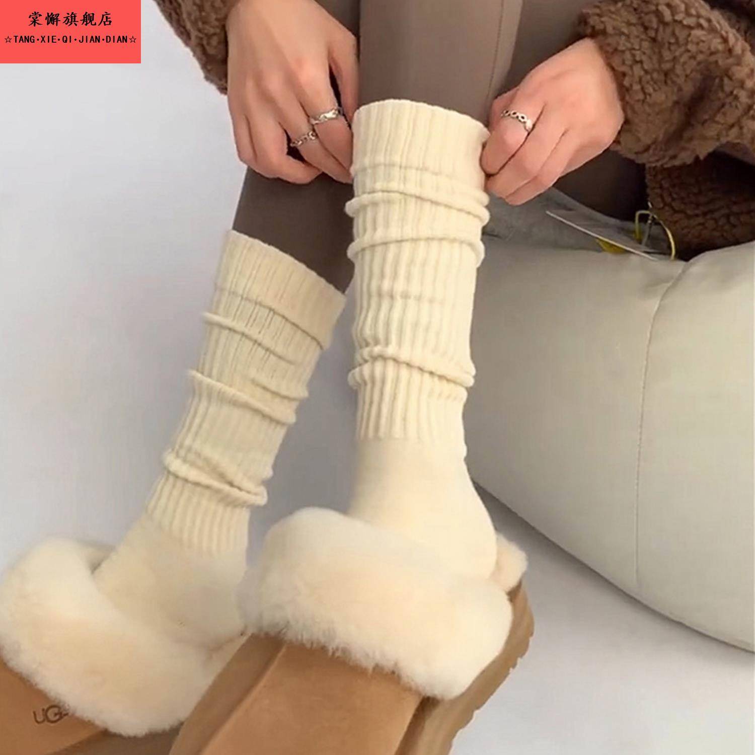 袜子中筒长袜女秋冬 配 小腿袜女冬秋款 显瘦白色长筒堆堆袜鲨鱼裤