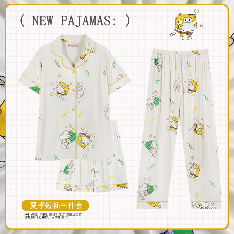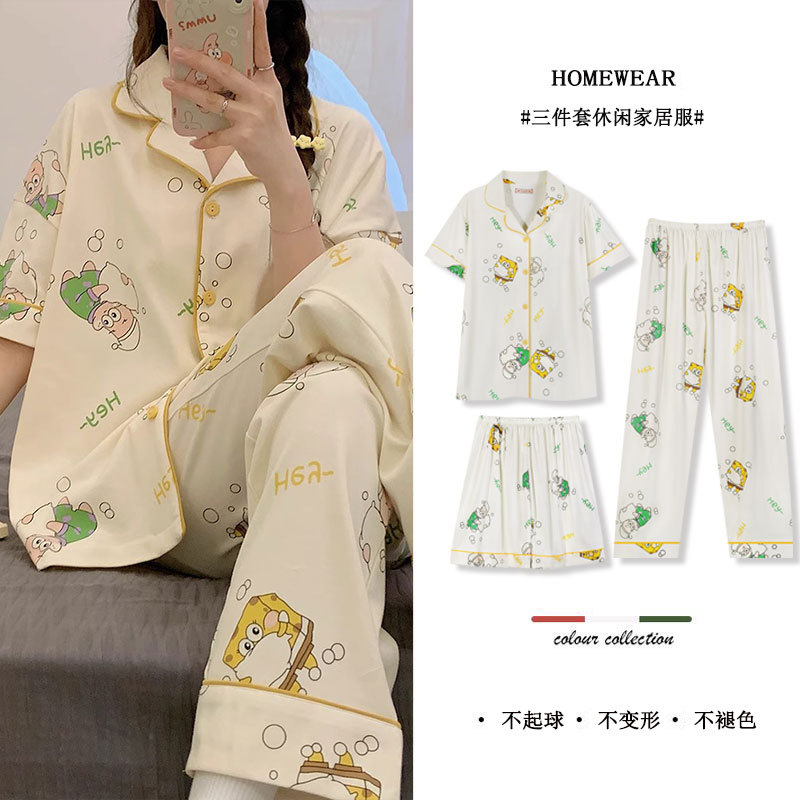跨境家居服新款 女棉宽松卡通可爱海绵睡衣外穿宝宝套装 三件短袖
