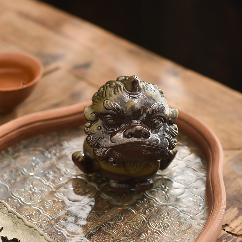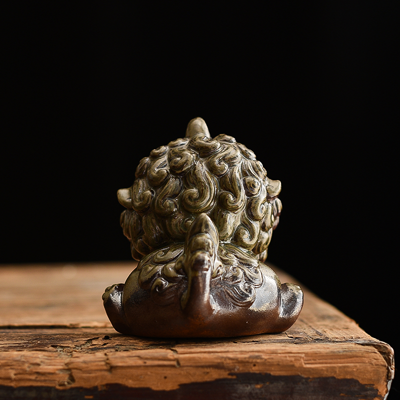 粗陶复古茶宠摆件精品手工醒狮创意可爱高端家用茶玩茶桌茶台配件