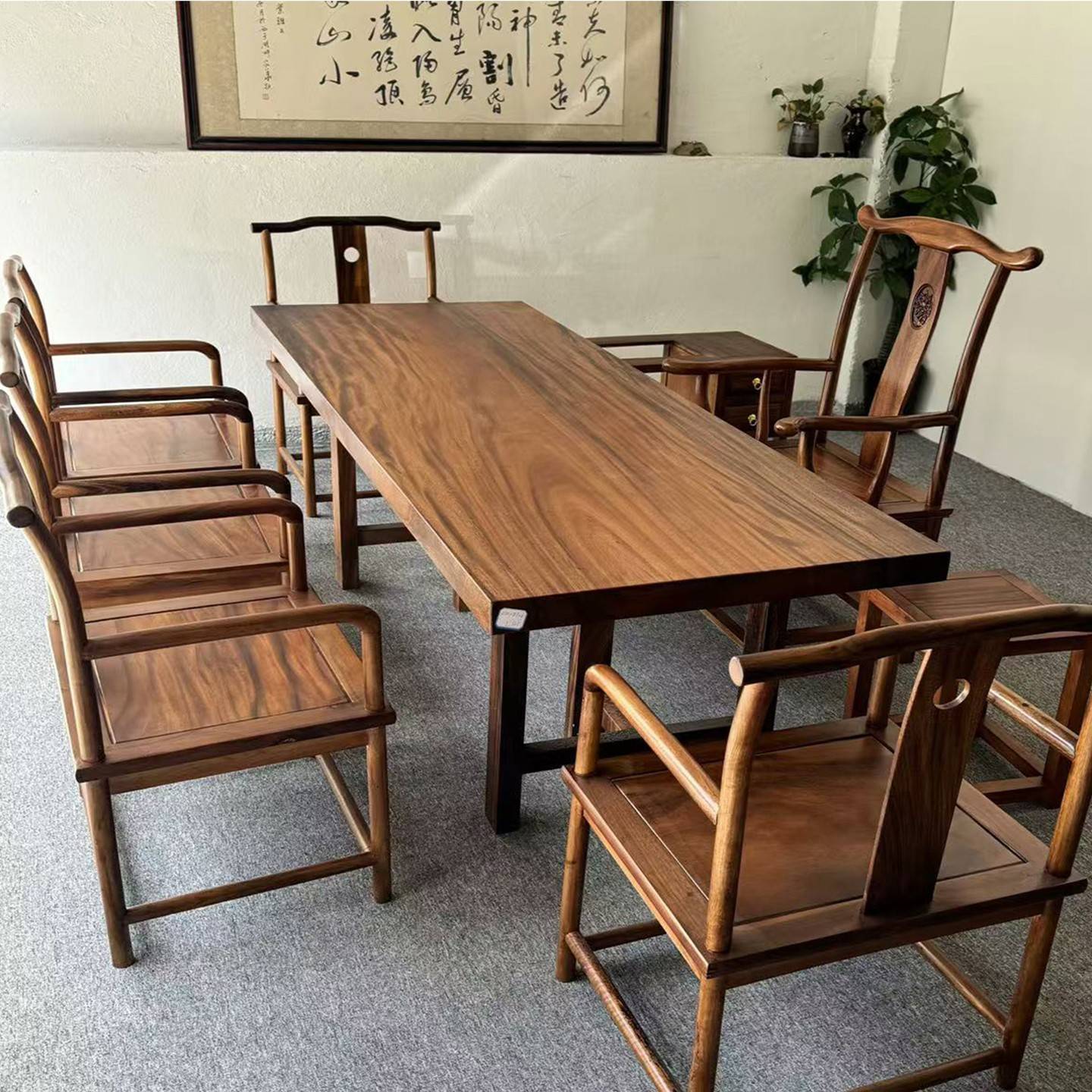 胡桃木实木大板茶桌茶台原木整板办公桌书桌家用餐桌泡茶桌椅组合