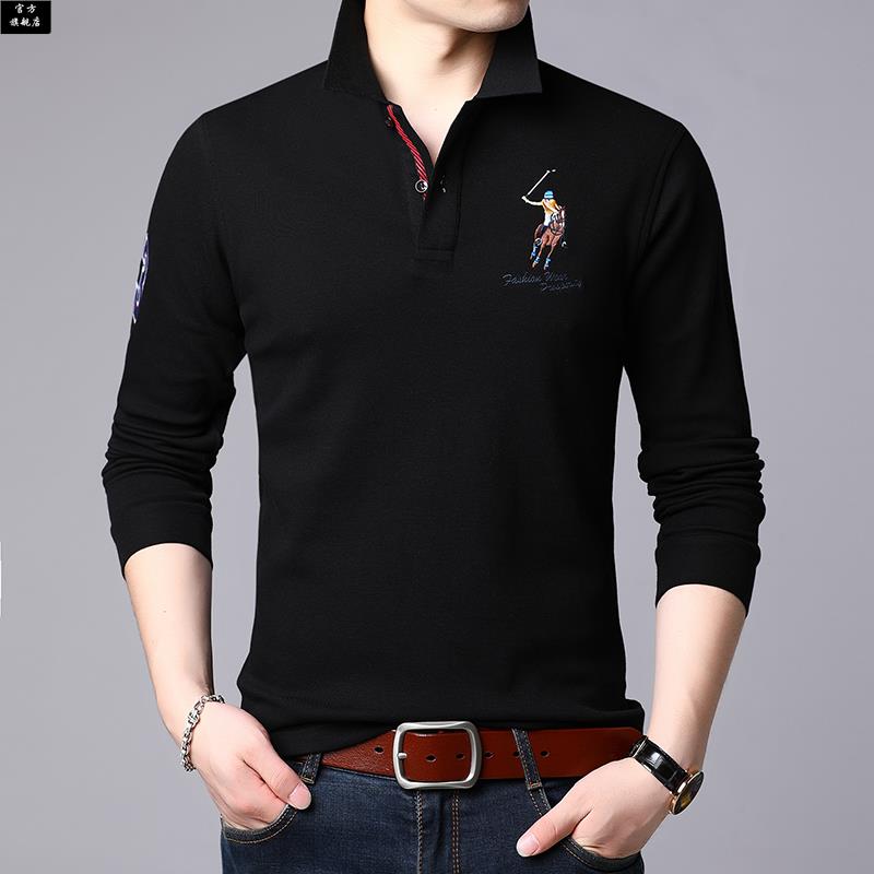 有带领子卫衣纯色纯棉体中年 秋季 保罗官方翻领t恤男长袖 2025新款